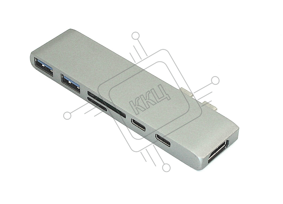 Адаптер сдвоенный Type C на HDMI, USB 3.0*2 + Type C* 2 + SD/TF для MacBook, серый