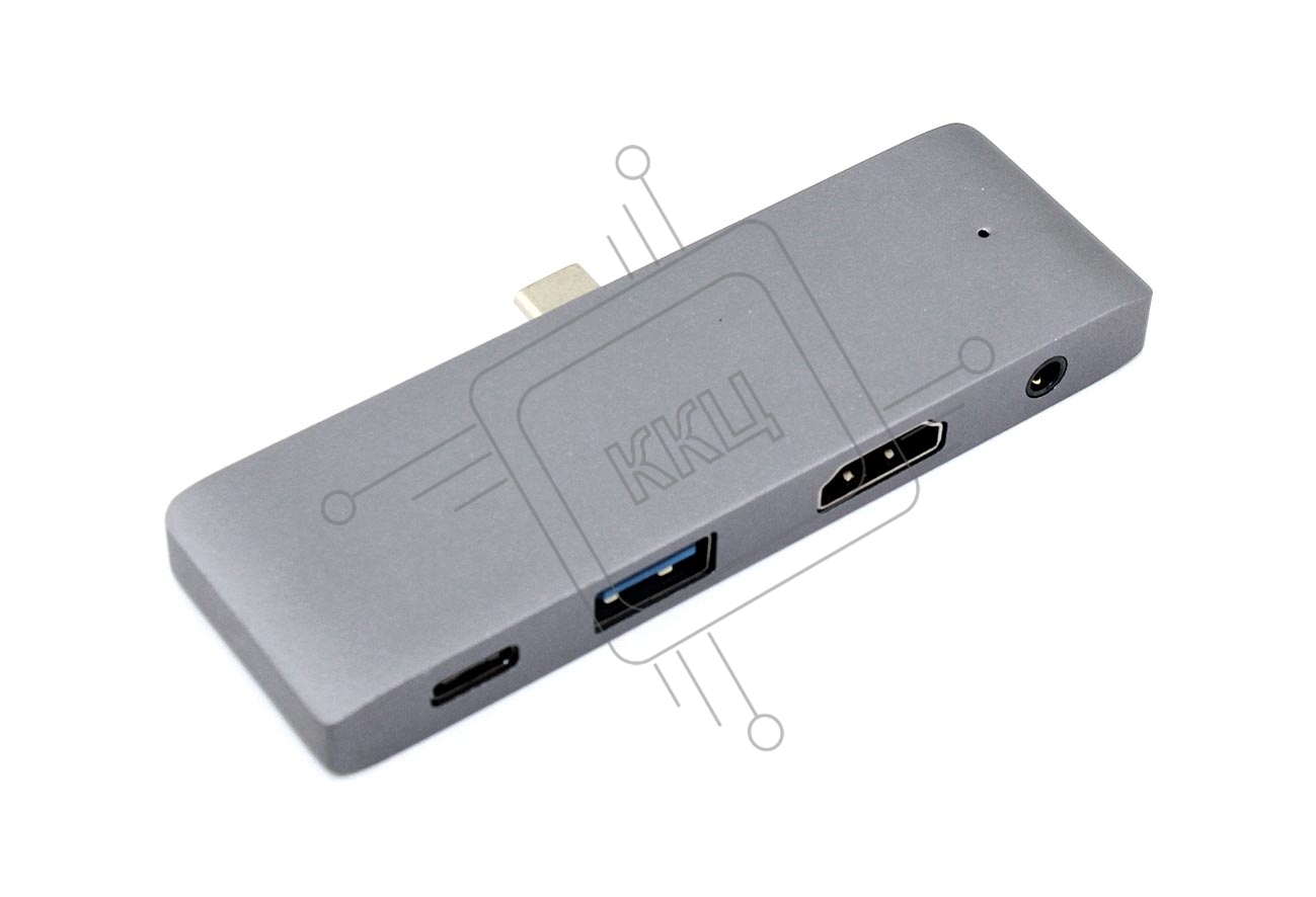 Адаптер Type C на HDMI, USB 3.0 + Audio 3,5 + Type C, серый