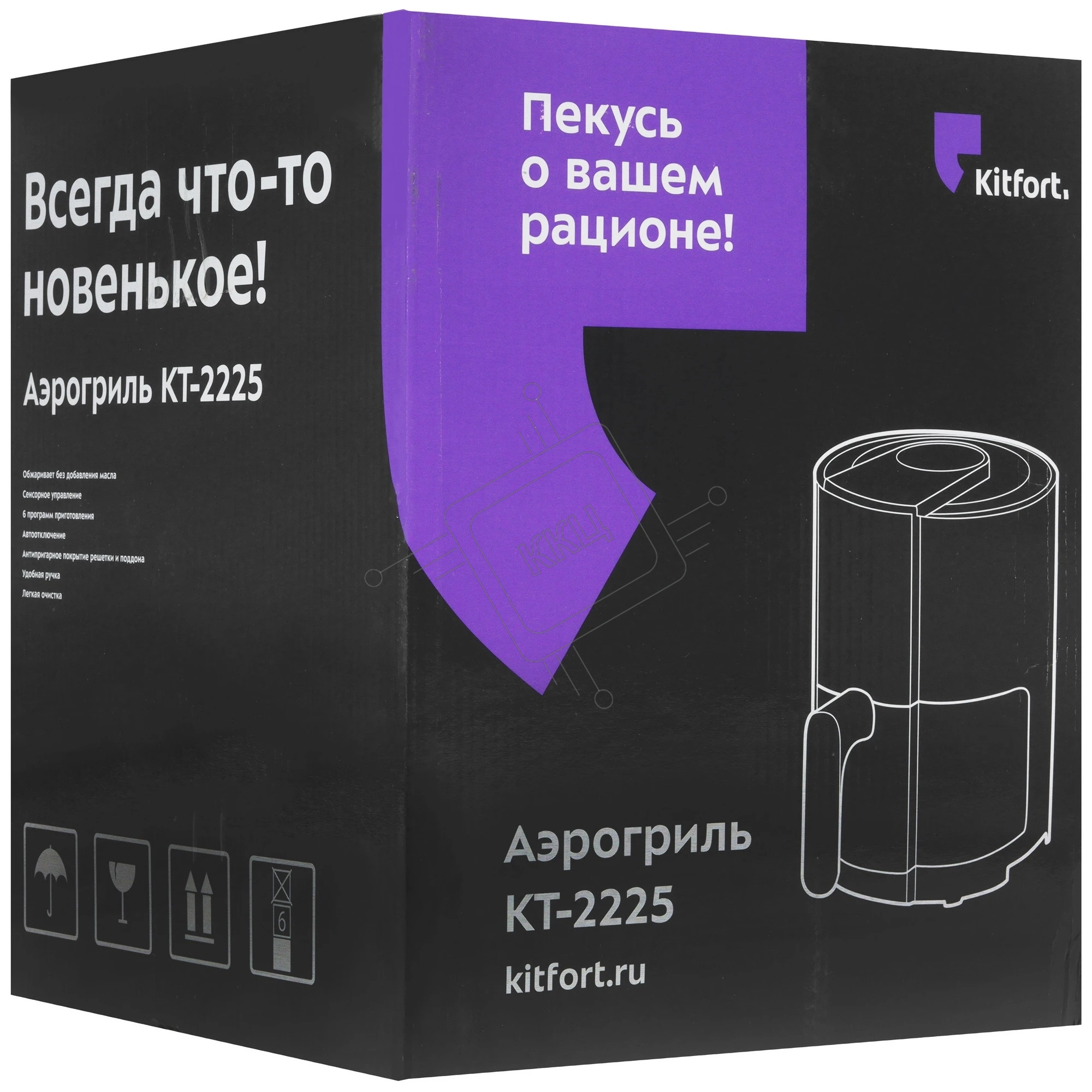 Аэрогриль Kitfort КТ-2225 черный, 1000 Вт, 1.9 л, сенсор, 6 программ