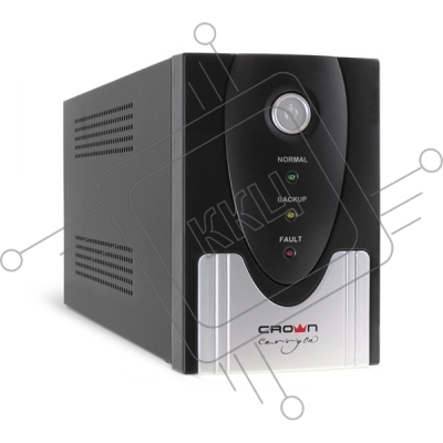 Источник бесперебойного питания CROWN 1200VA/720W, металл, 2x12V/9AH, розетки 2*IEC + 2*EURO, трансформатор AVR 145-280V, съёмный кабель 1.2м, фильтр телефонной и ethernet линии RJ11/45, защита батареи, от перегрузки, от КЗ, ПО