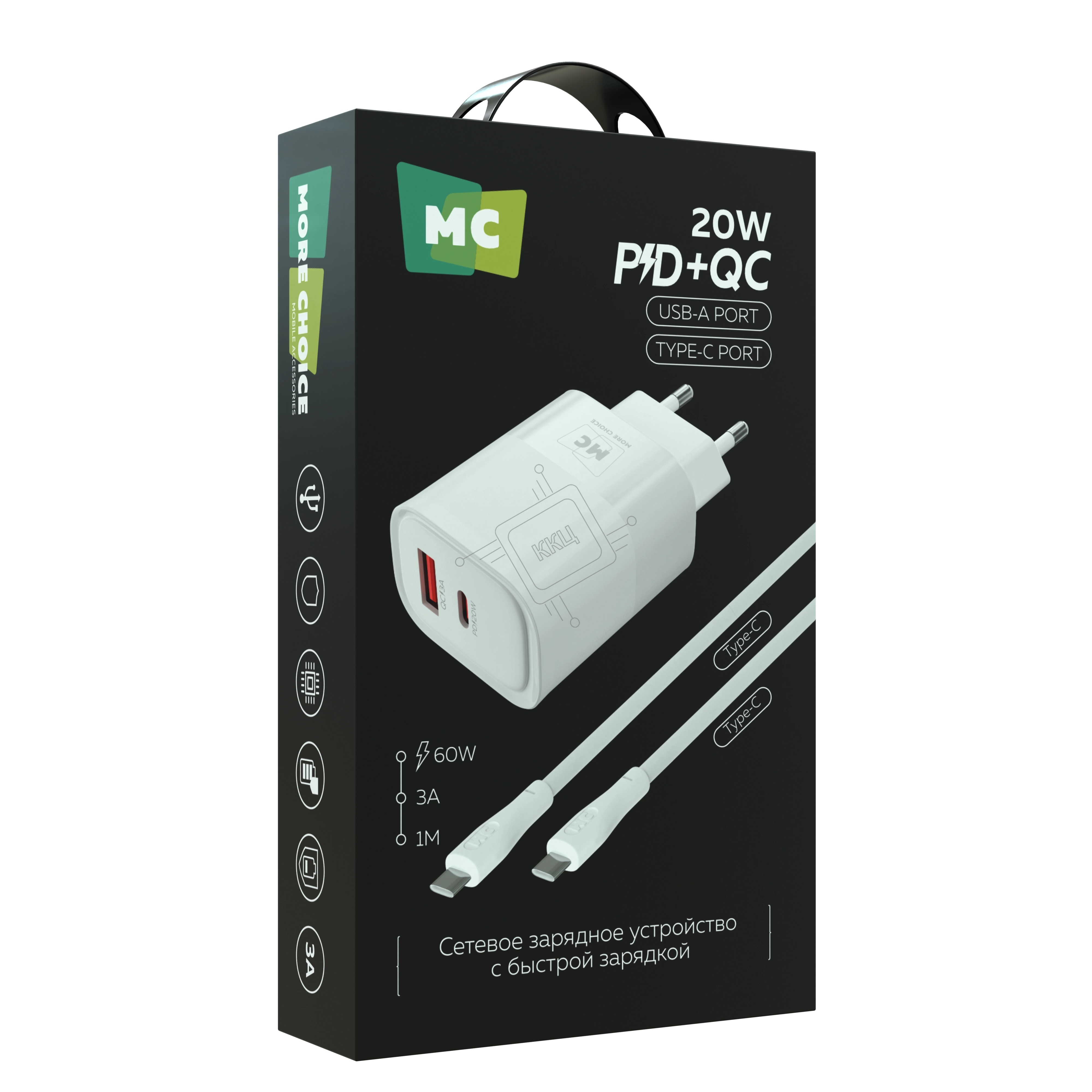 Зарядное устройство MORE CHOICE (4620202555564) NC81a СЗУ 1USB+1Type-C 3.0A PD 20W+ QC3.0, белый