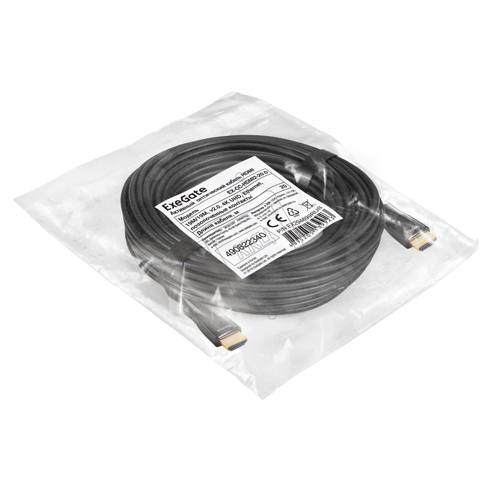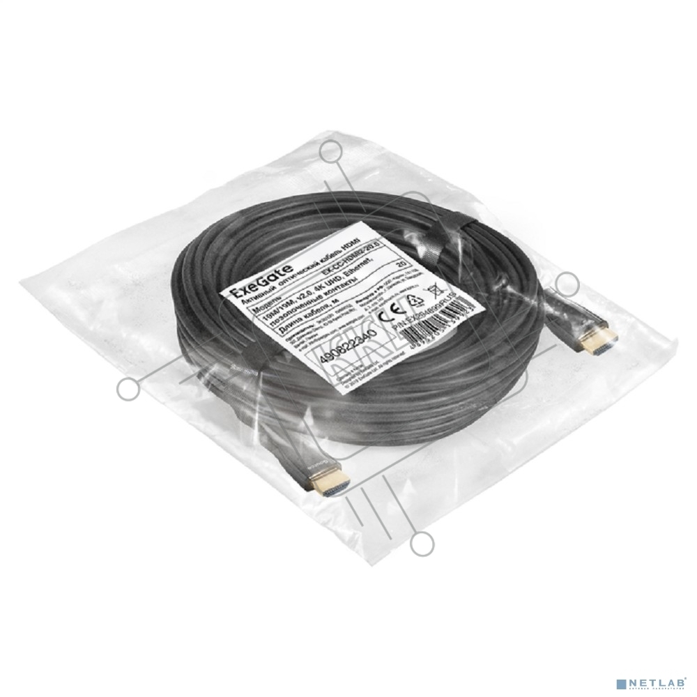 Активный оптический кабель HDMI ExeGate EX-CC-HDMI2-20.0 (19M/19M, v2.0, 20м, 4K UHD, Ethernet, позолоченные контакты)