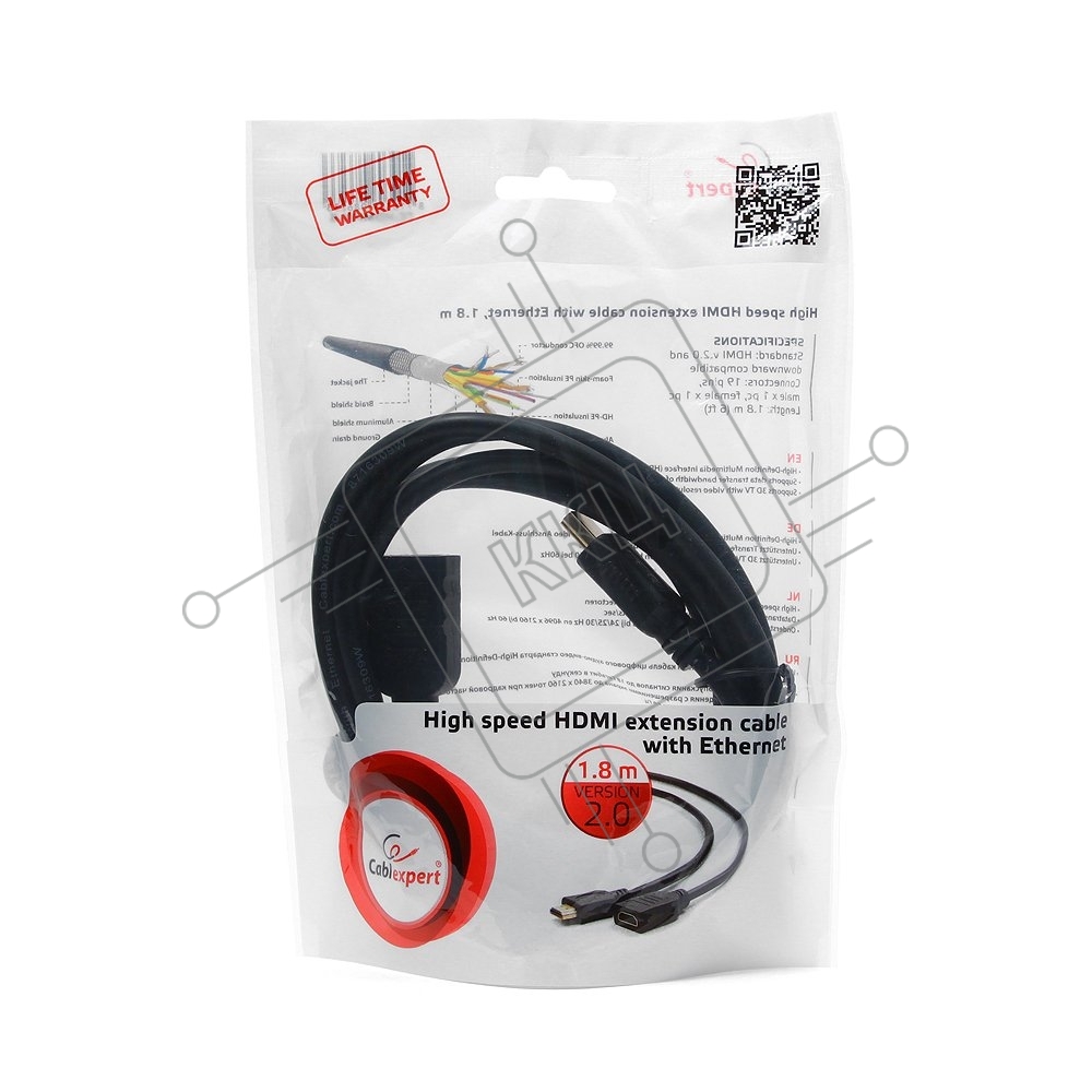Кабель-удлинитель HDMI Cablexpert CC-HDMI4X-6, 19M/19F, v2.0, позол.разъемы, экран, 1.8м, черный, пакет