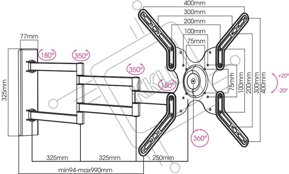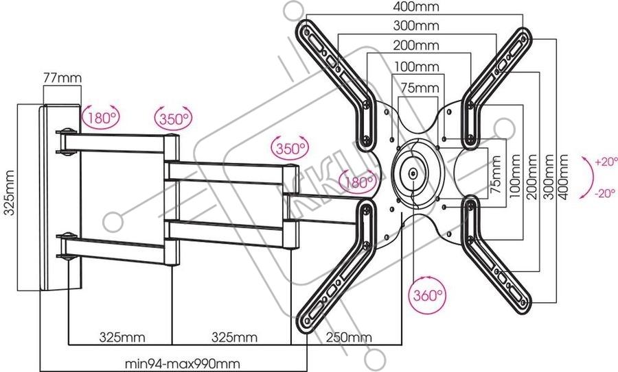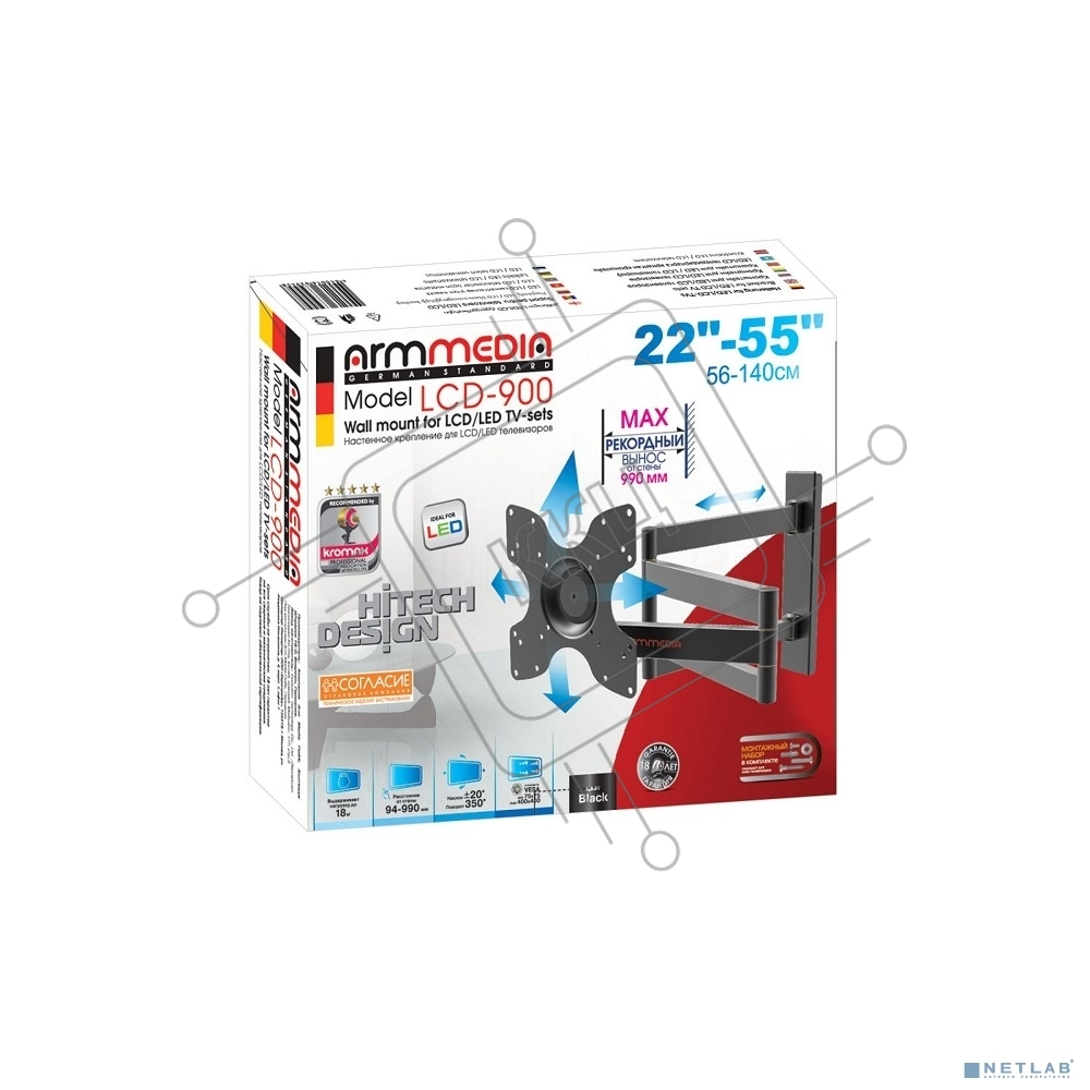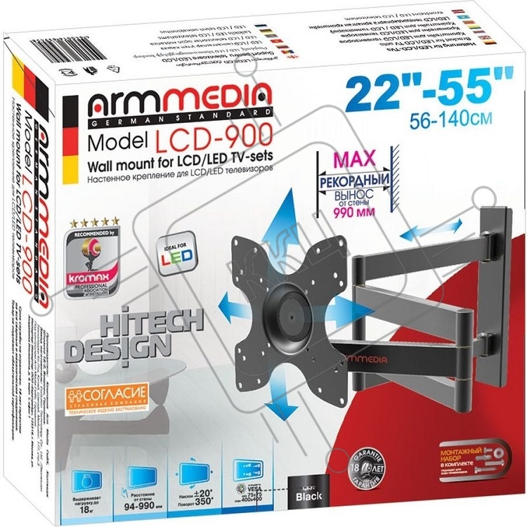 Кронштейн для телевизора Arm Media LCD-900 черный 22"-55" макс.18кг настенный поворот и наклон