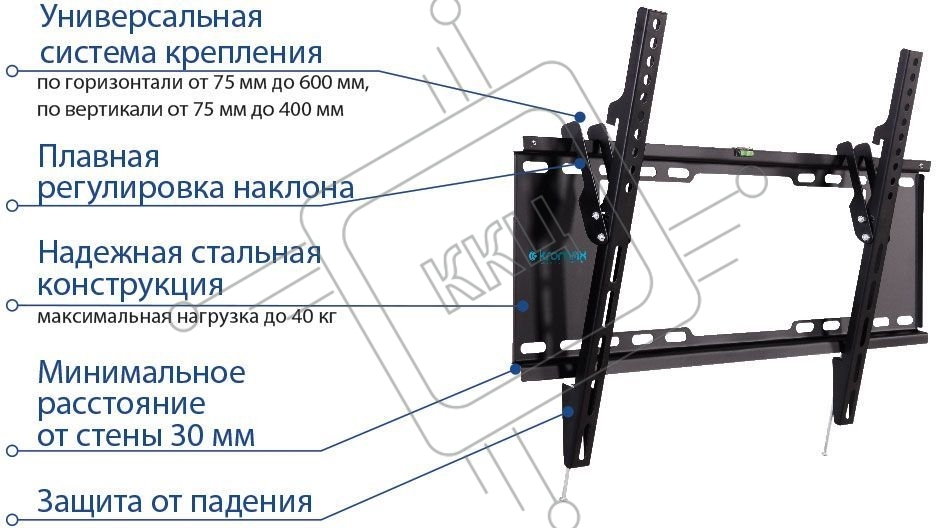 Кронштейн для телевизора Kromax IDEAL-102 черный 32"-90" макс.40кг настенный наклон
