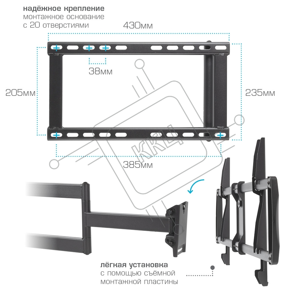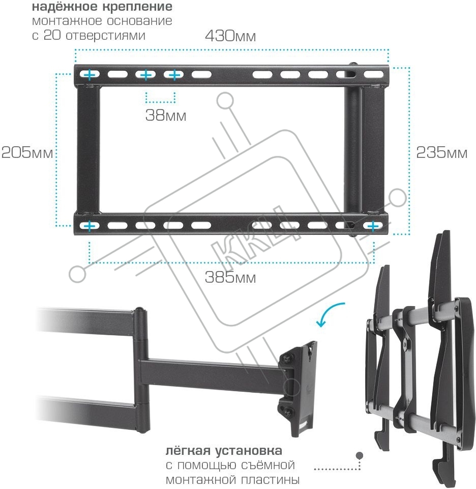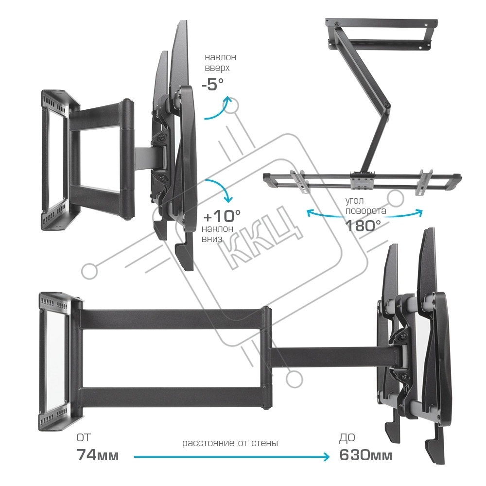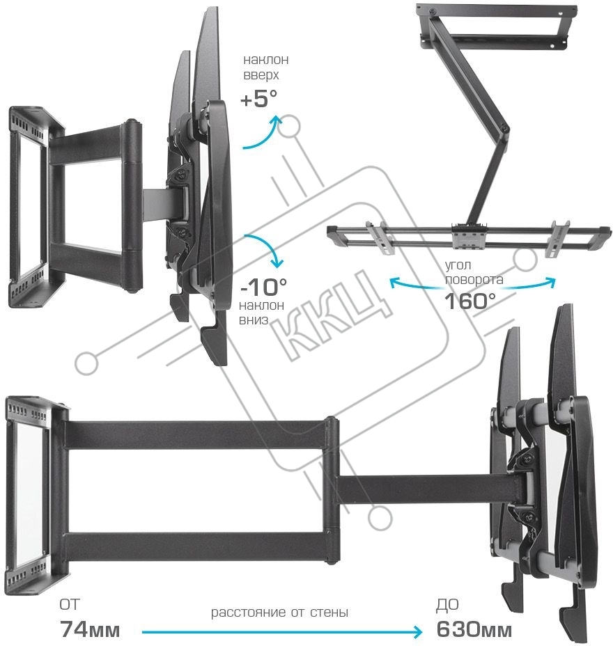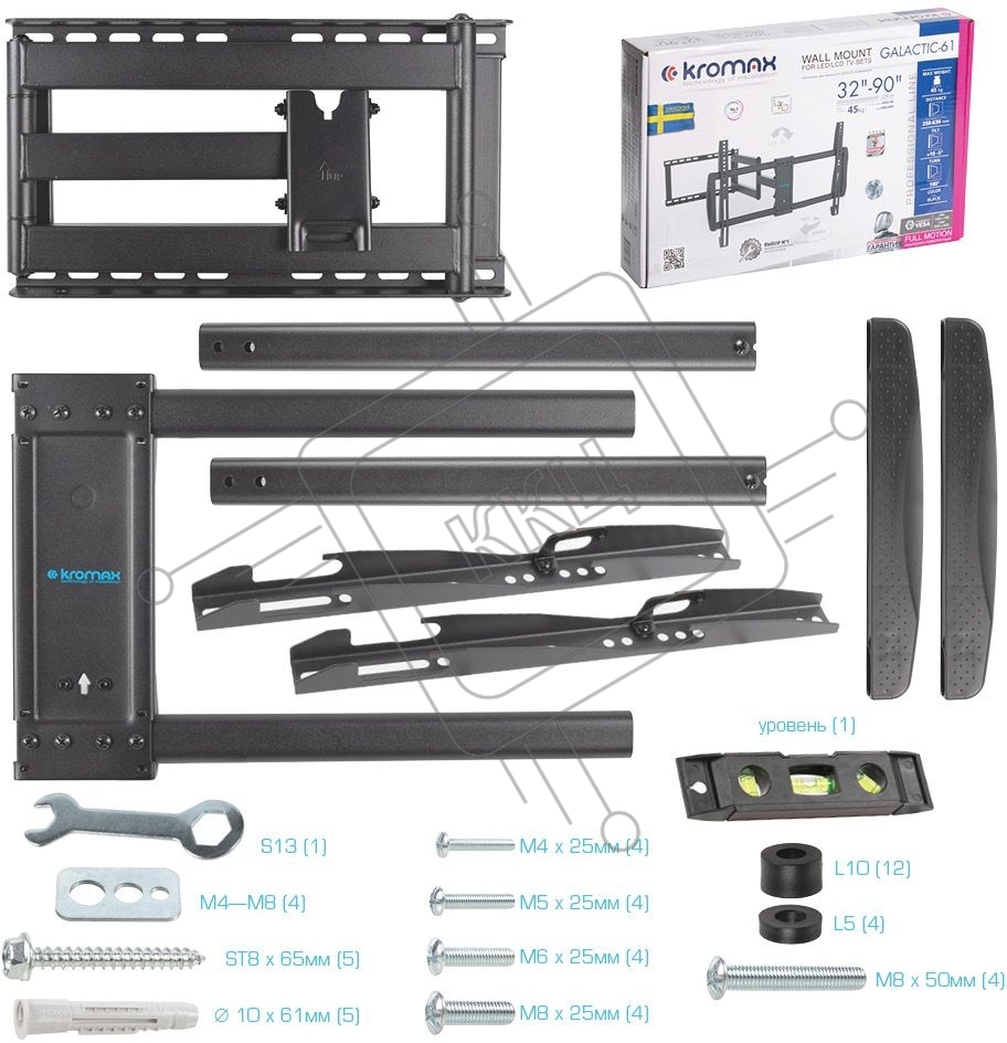 Кронштейн для телевизора Kromax GALACTIC-61 черный 32"-90" макс.45кг настенный поворот и наклон