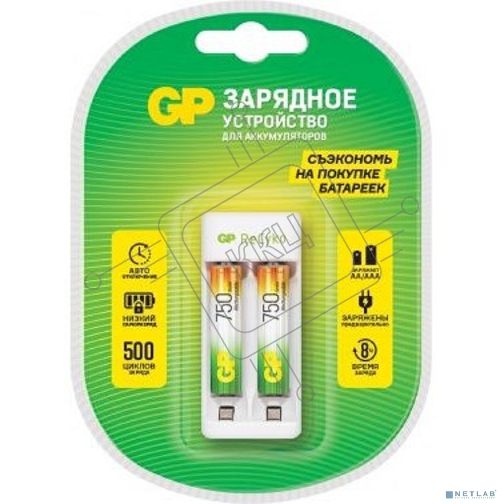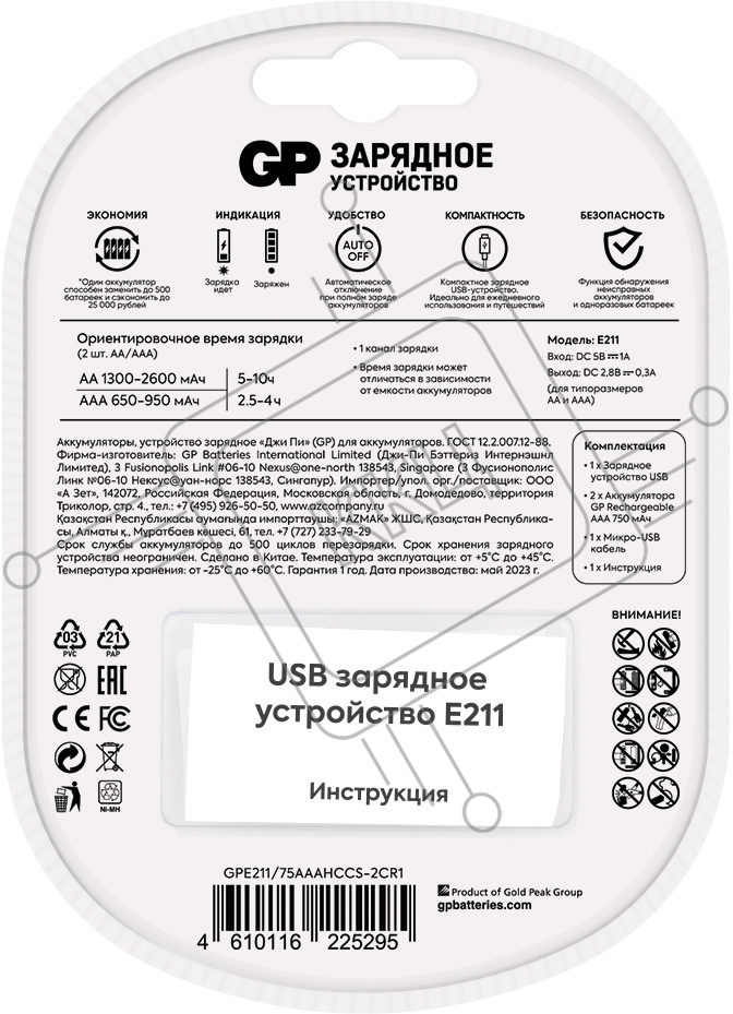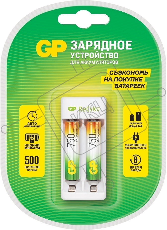 Зарядное устройство GP Rechargeable E211/75AAAHCCS-2CR1 AA/AAA NiMH 750mAh (2шт) блистер