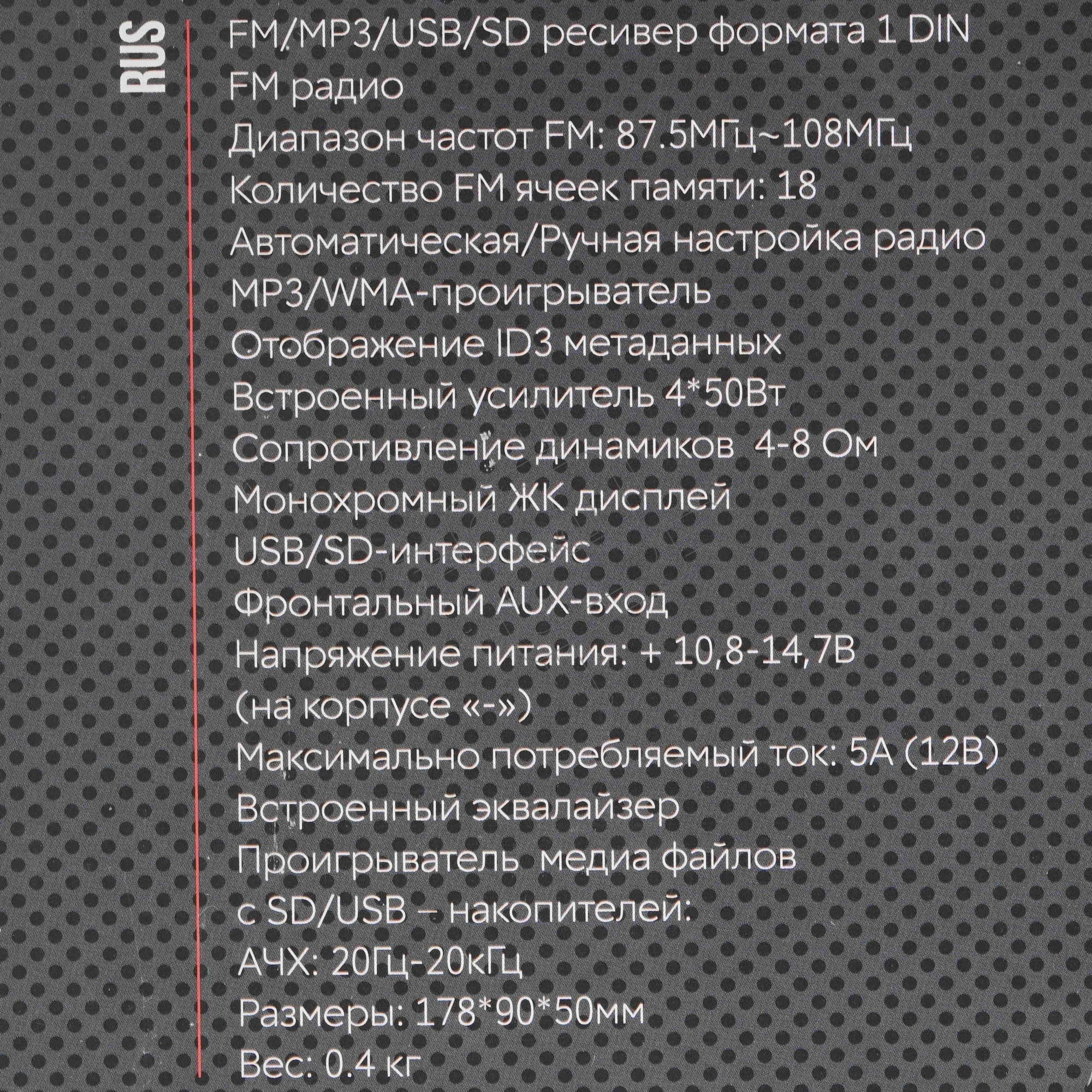 Автомагнитола ACV AVS-814BW, 1 DIN, Bluetooth, USB Type-A, AUX