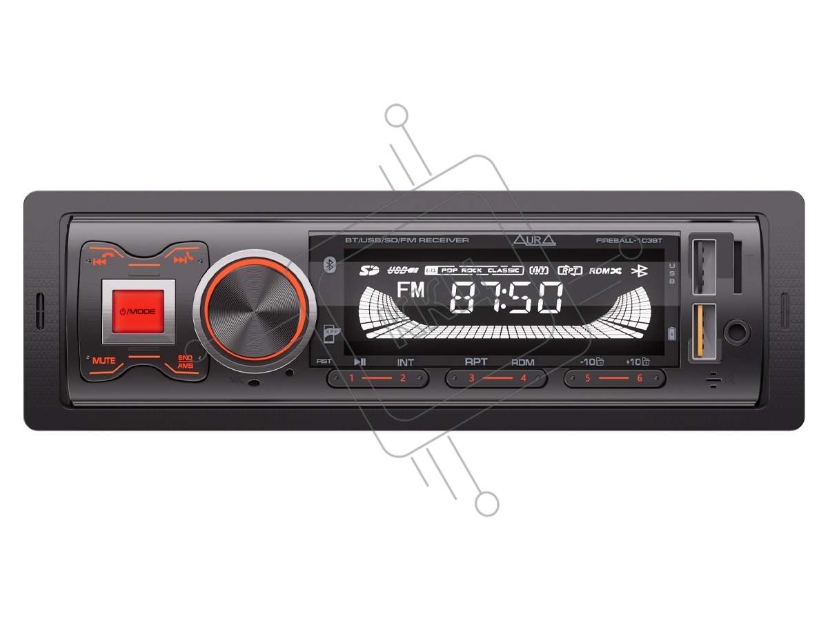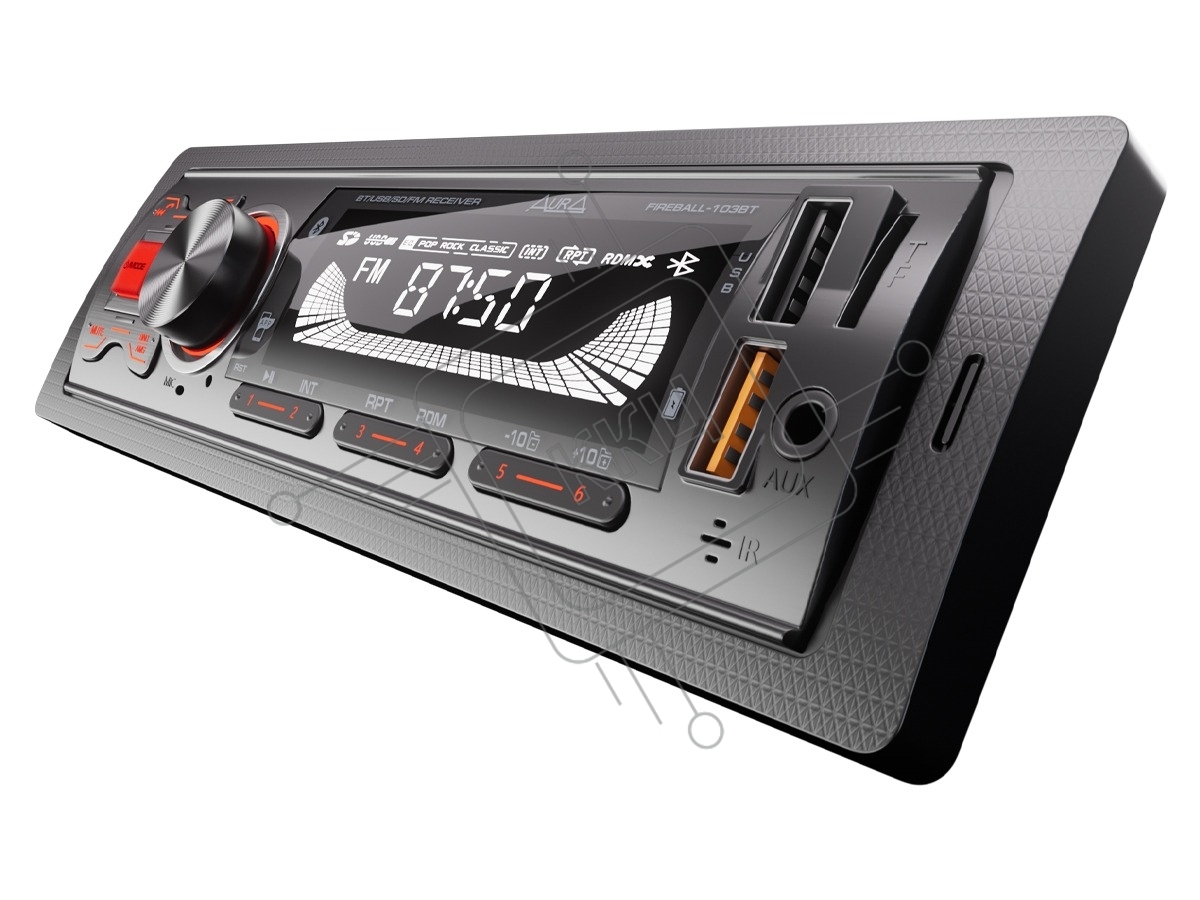 Автомагнитола AURA FIREBALL-103BT, 1 DIN, Bluetooth, USB Type-A, AUX