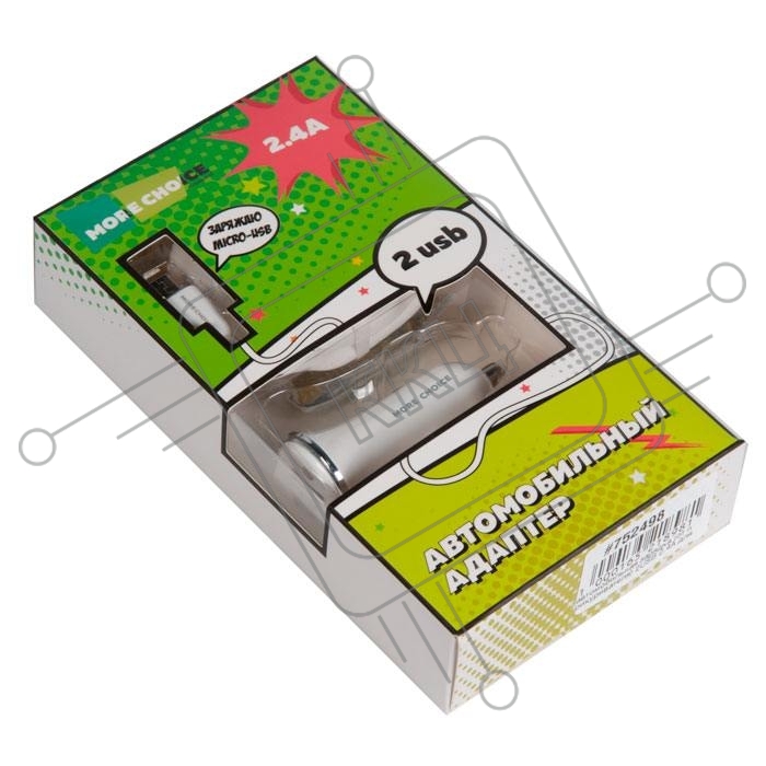 Автомобильная зарядка (от прикуривателя) 2USB 2.4A для micro USB More choice AC22m белый