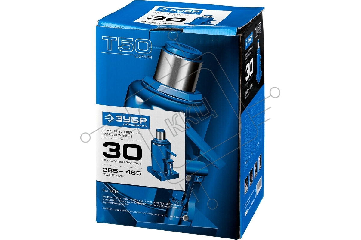 Домкрат ЗУБР 43060-30_z01 гидравлический бутылочный t50 30т 285-465мм профессионал