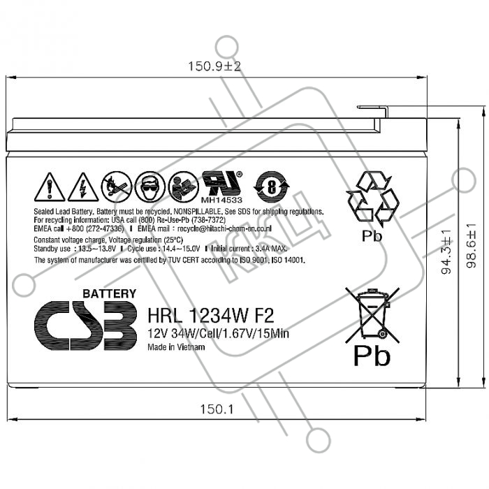 Батарея CSB HRL 1234W (12V, 9Ah)