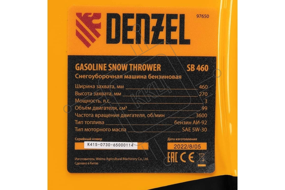 Бензиновая снегоуборочная машина Denzel SB 460, 99cc, ручной старт