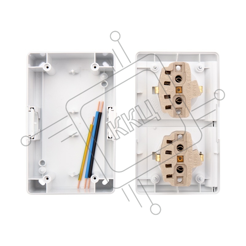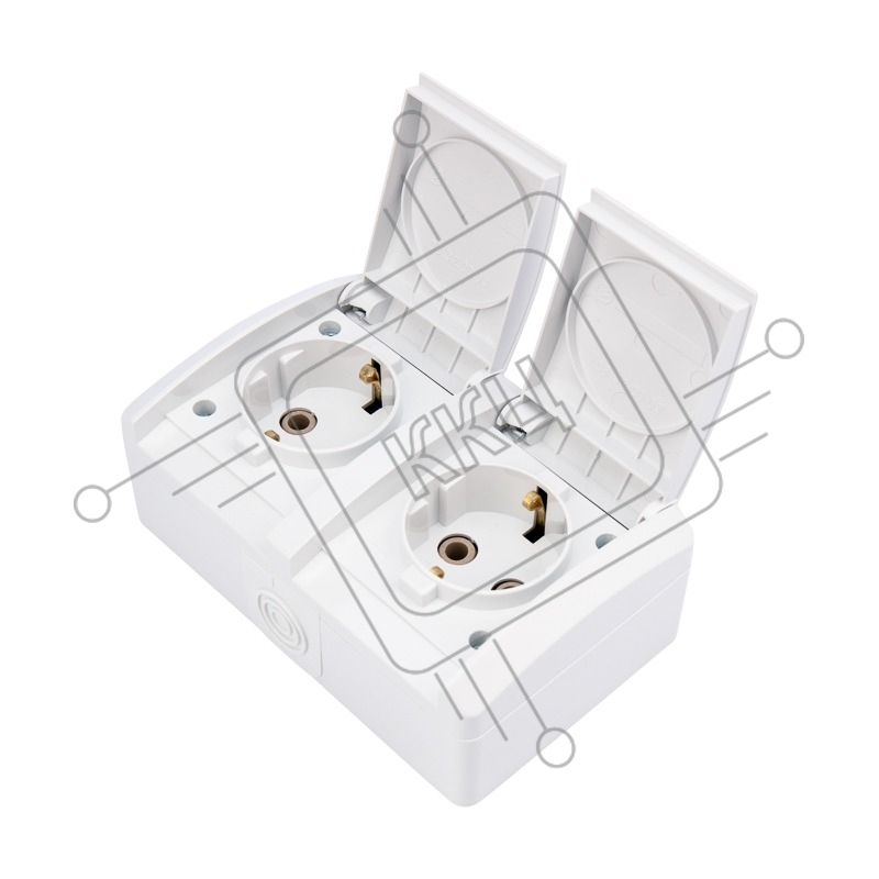 Блок горизонтальный 2 розетки (керамика) INDUSTRIAL IP54 с заземлением, о/у, белый KRANZ