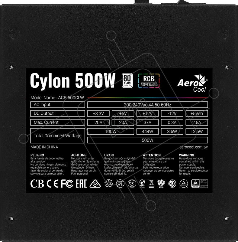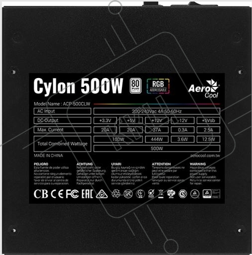 Блок питания Aerocool / Formula CYLON 500, 500Вт, 80 PLUS, 120мм,черный
