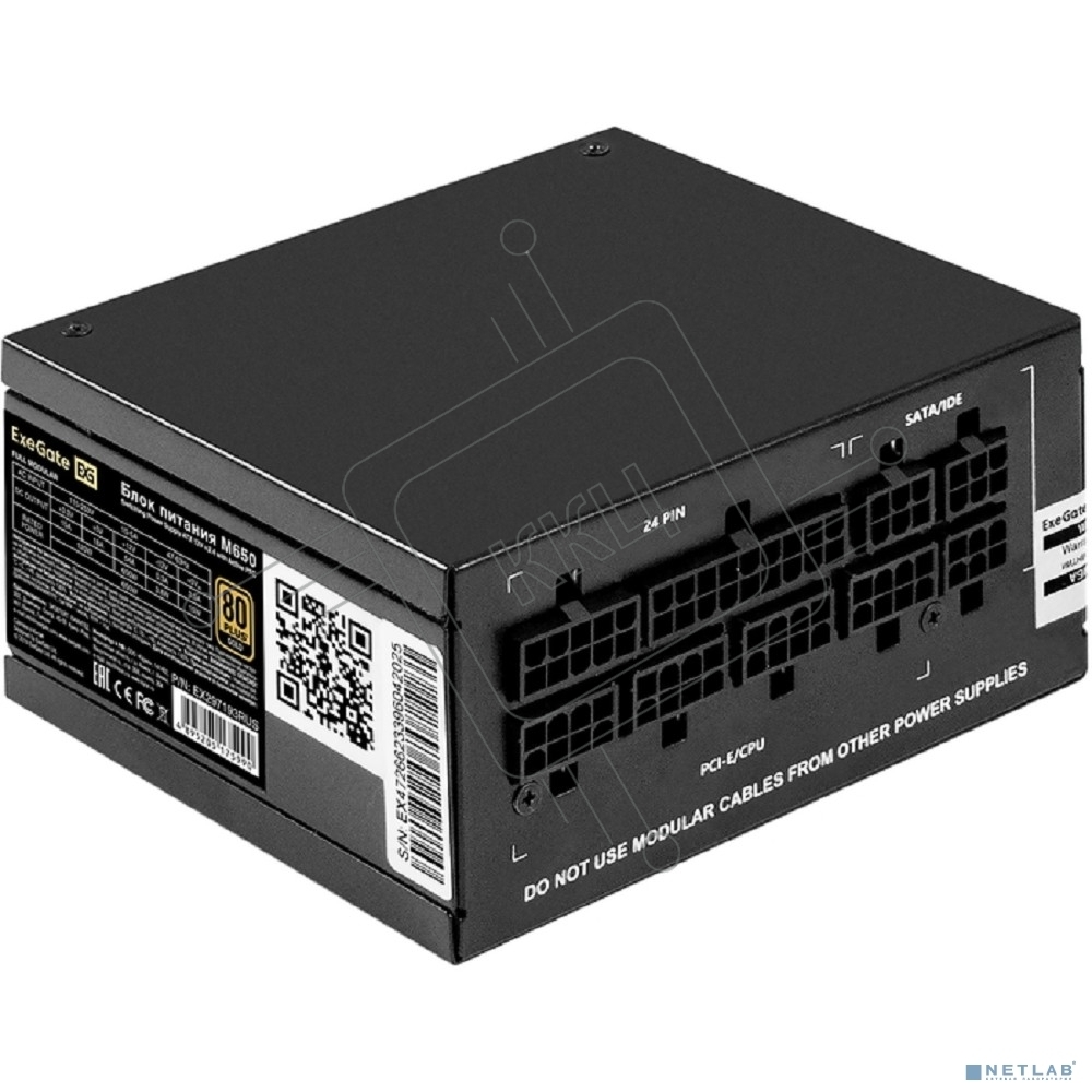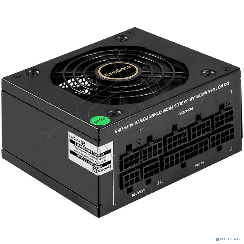 Блок питания 650W ExeGate M650 GOLD (SFX, APFC, КПД 90% (80 PLUS GOLD), 9см fan, 24pin, (4+4)pin, 2xPCI-E, 6xSATA, 3xIDE, 1xFDD, Full Cable Management, black, ATX adapter, Retail box)