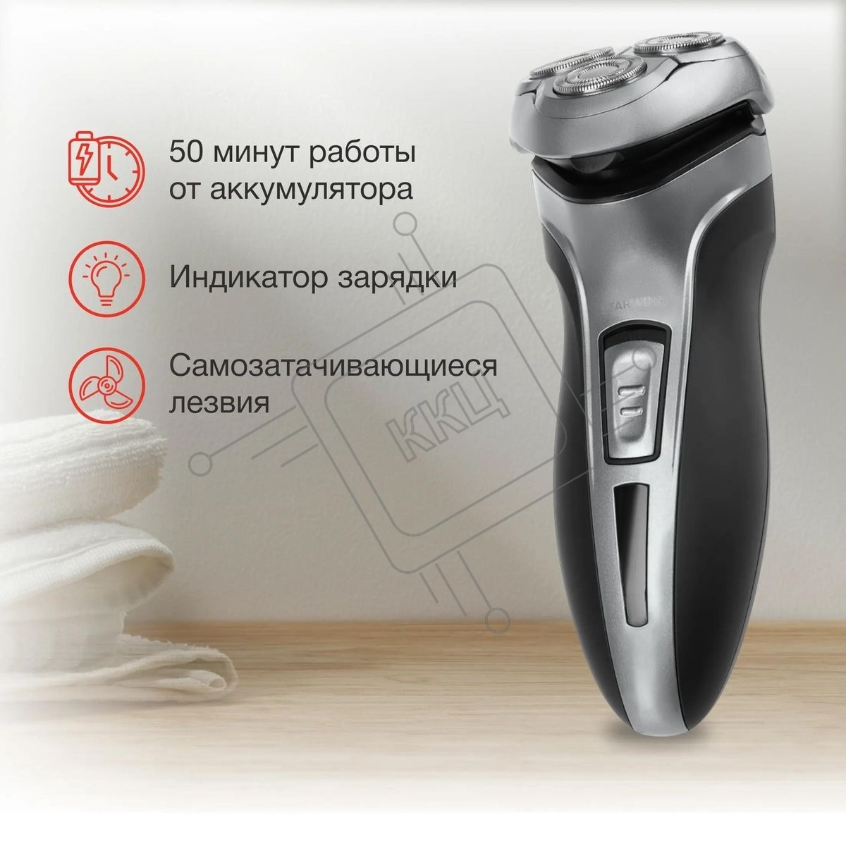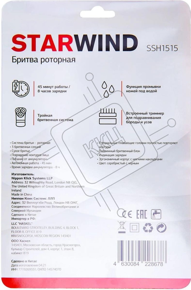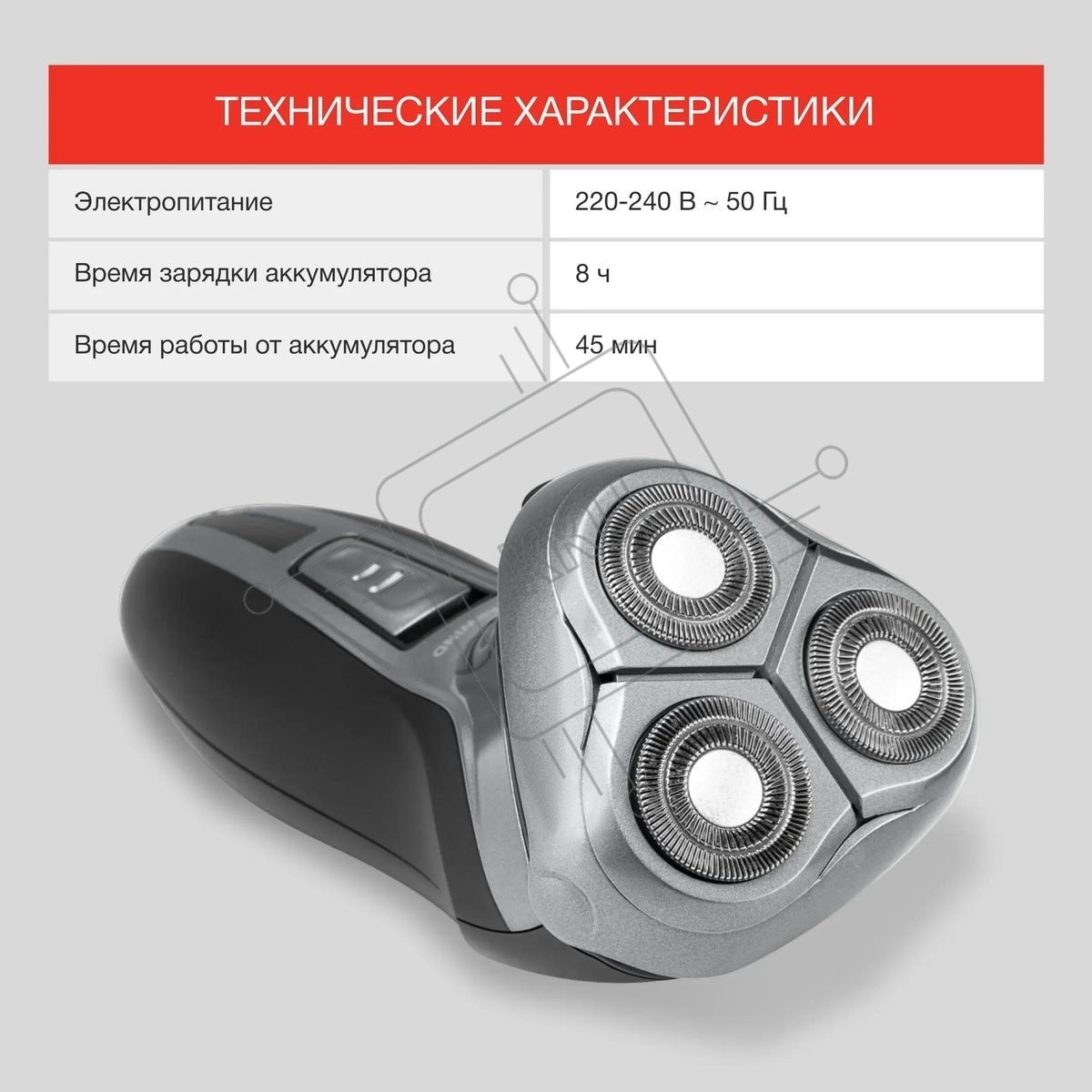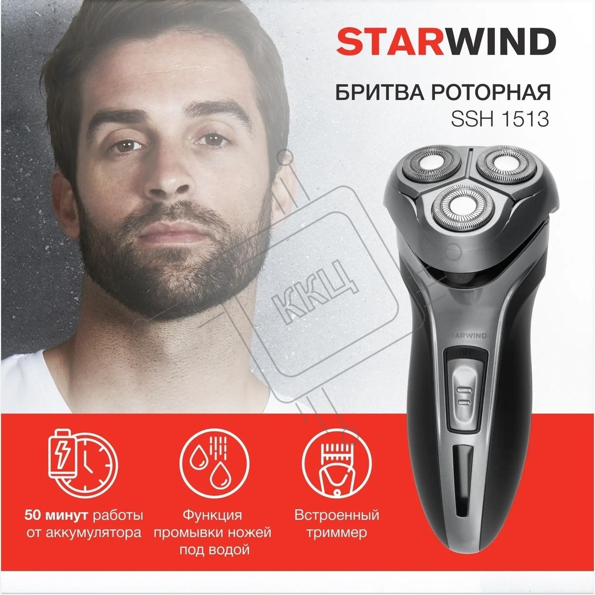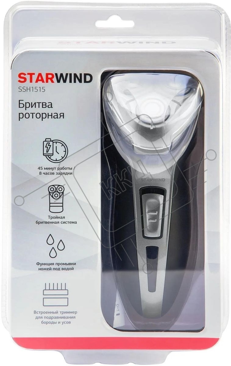 Электробритва роторная Starwind SSH 1515 реж.эл.:3 питан.:аккум. серебристый/черный