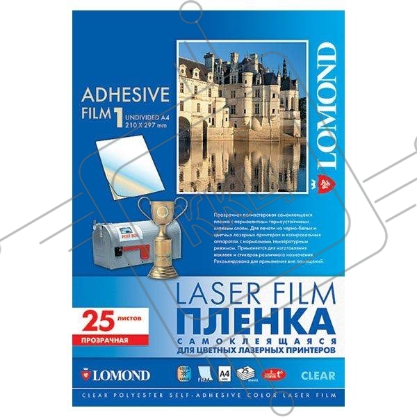 Пленка Lomond, самоклеящаяся, прозрачная, неделенная, А4, 25 листов, для лазерной цветной и ч/б печати.