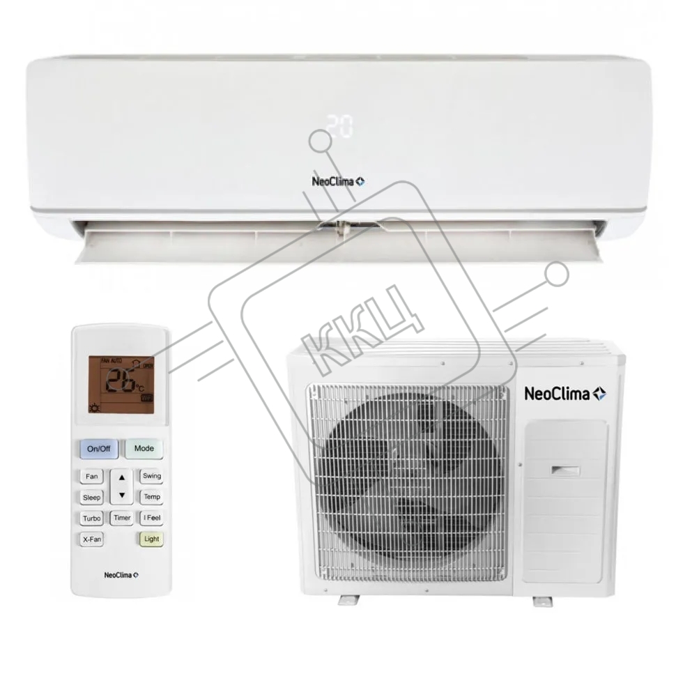 Кондиционер сплит-система Neoclima NS/NU-HAX24R 24000 BTU, 65 м², 35/48 дБ, охлаждение, обогрев, осушение, белый