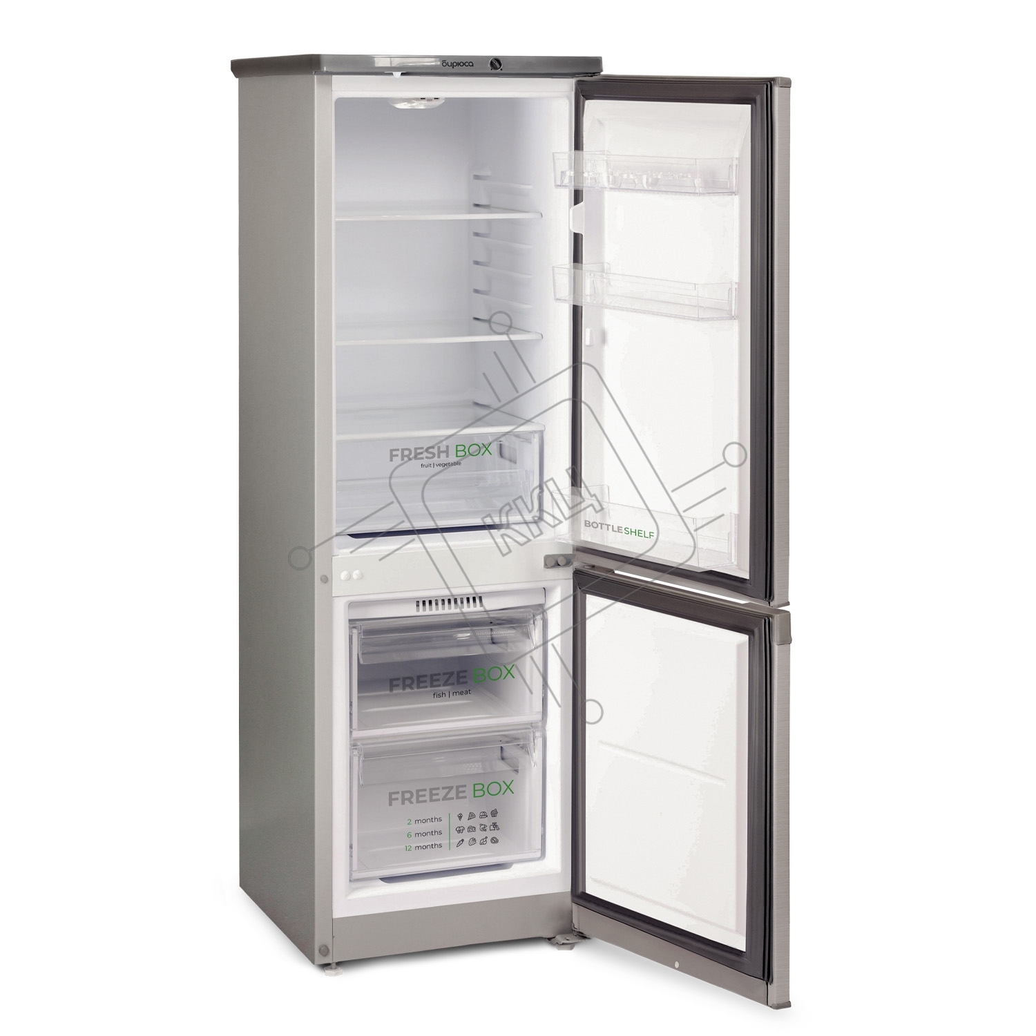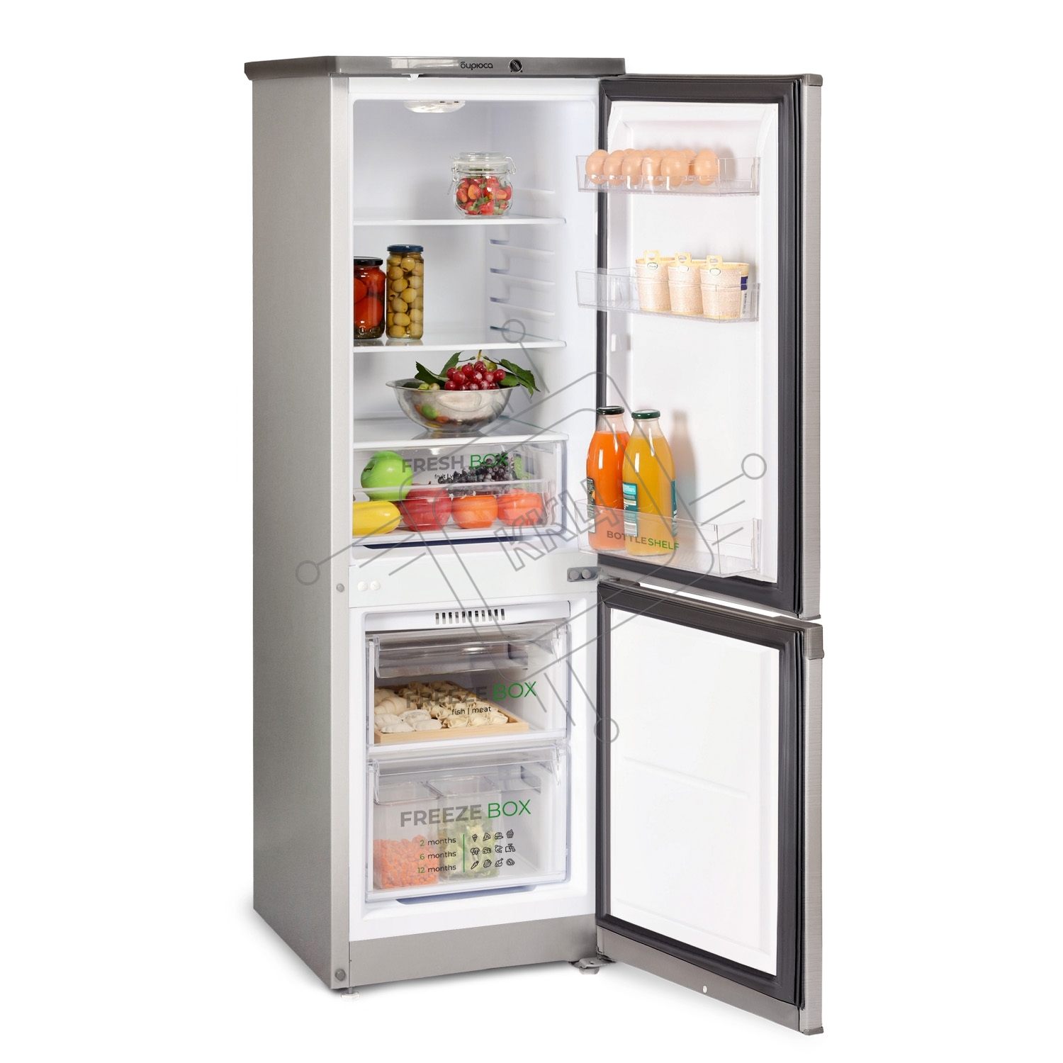 Холодильник Бирюса C418 серебристый металлопласт двухкамерный 125/55л морозилка снизу