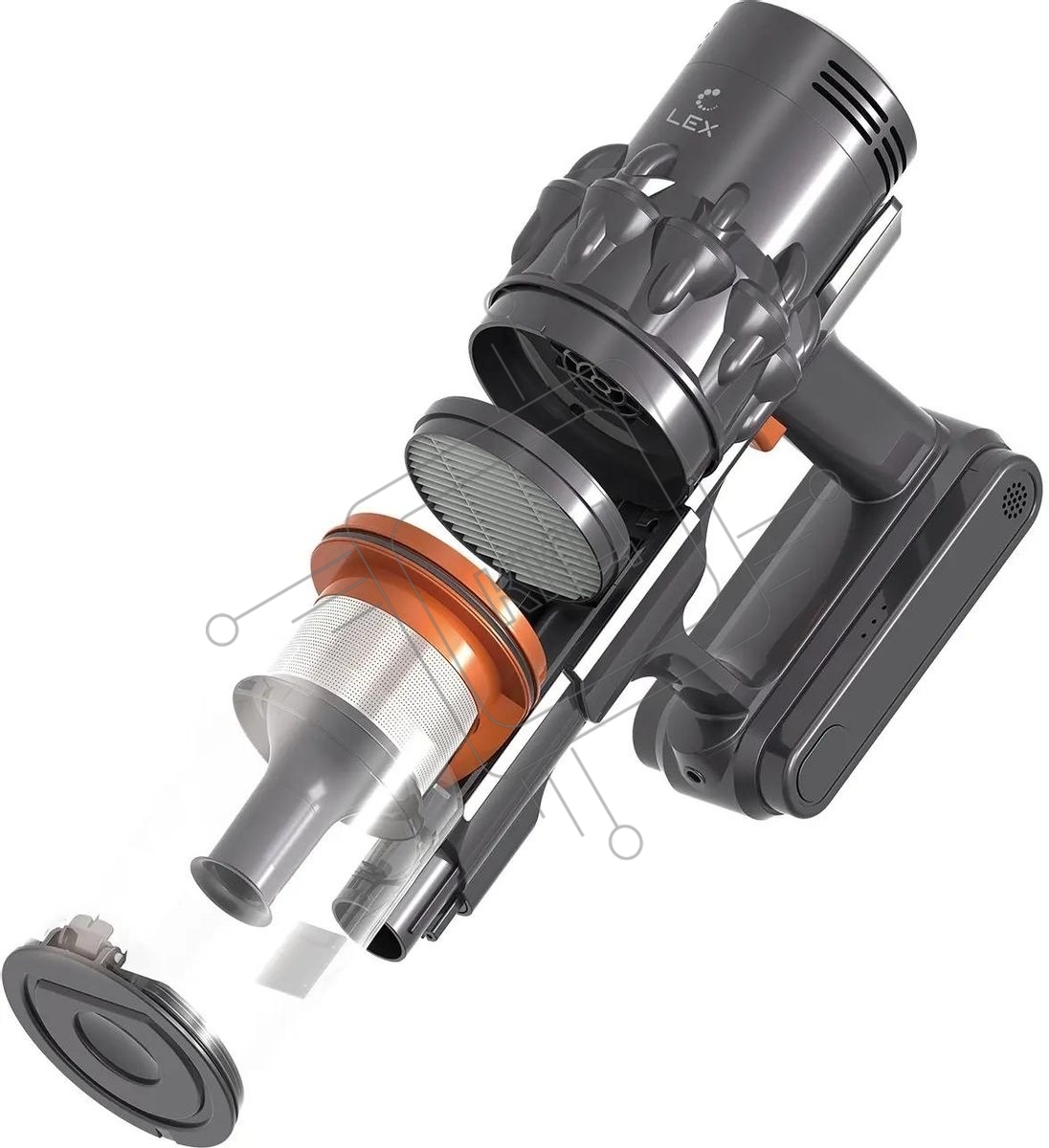 Пылесос вертикальный LEX LXVCS 7071 оранжевый, питание от аккумулятора, 196 Вт, уборка сухая, пылесборник 0.8 л, работа от АКБ max 40 мин