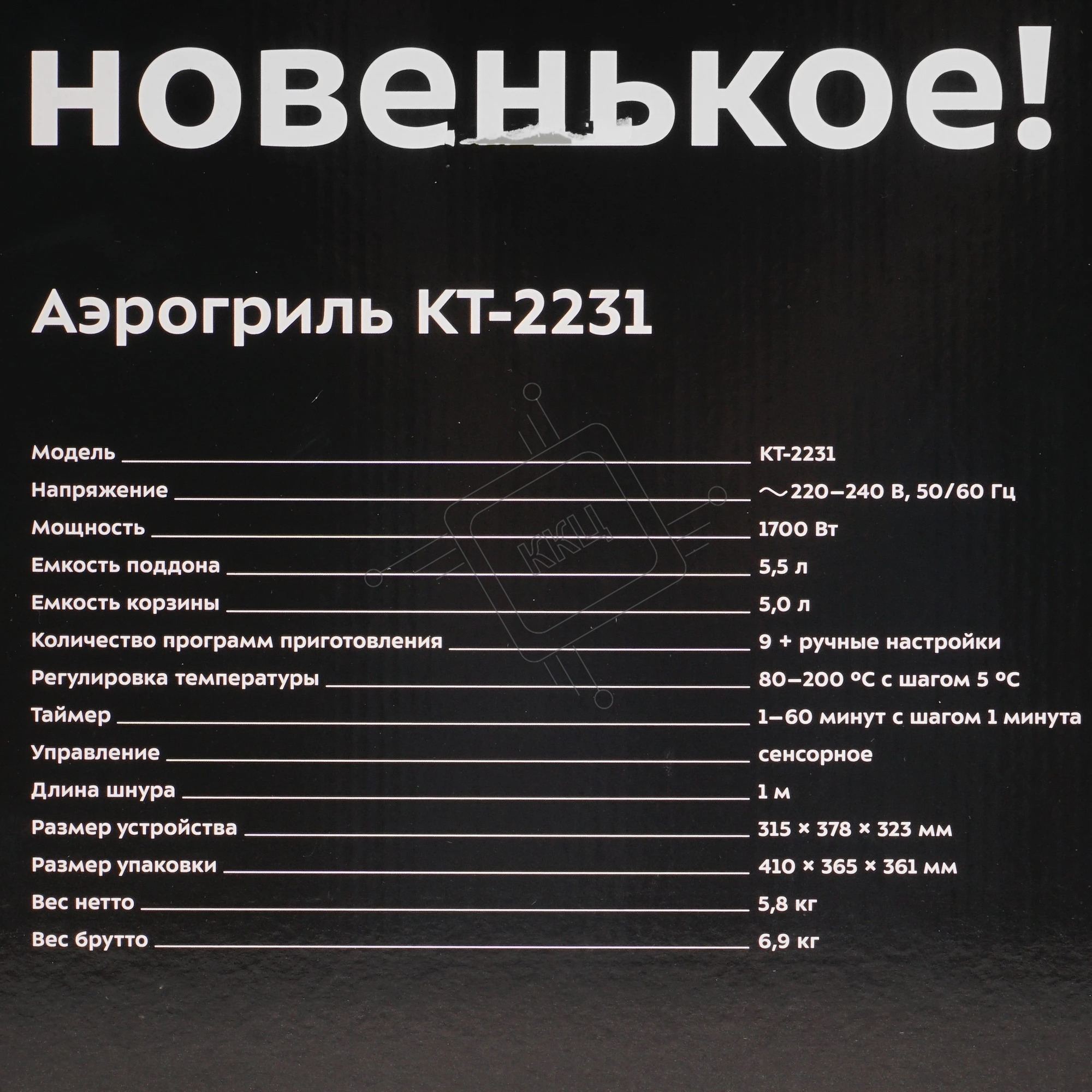 Аэрогриль Kitfort KT-2231 серый, 1700 Вт, 5 л, сенсор, 9 программ