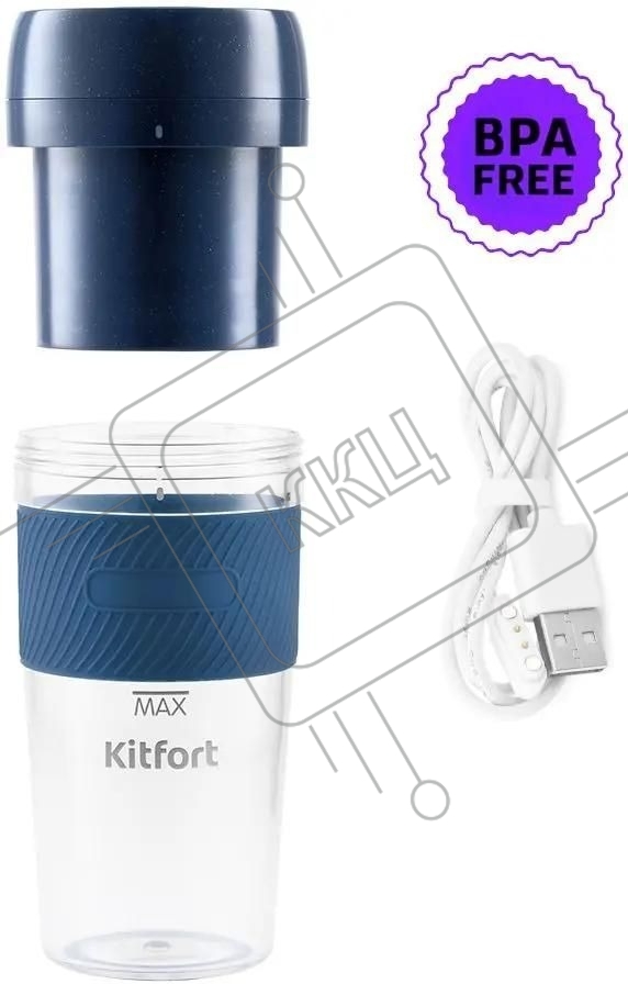Портативный блендер Kitfort Мощность 50 Вт.Максимальная скорость вращения ножей 15000 об/мин