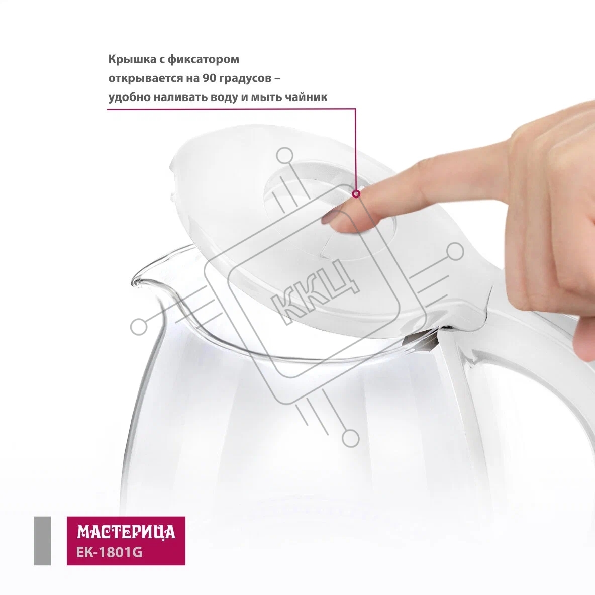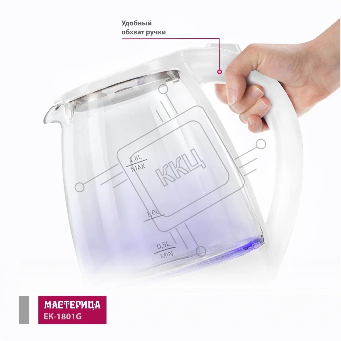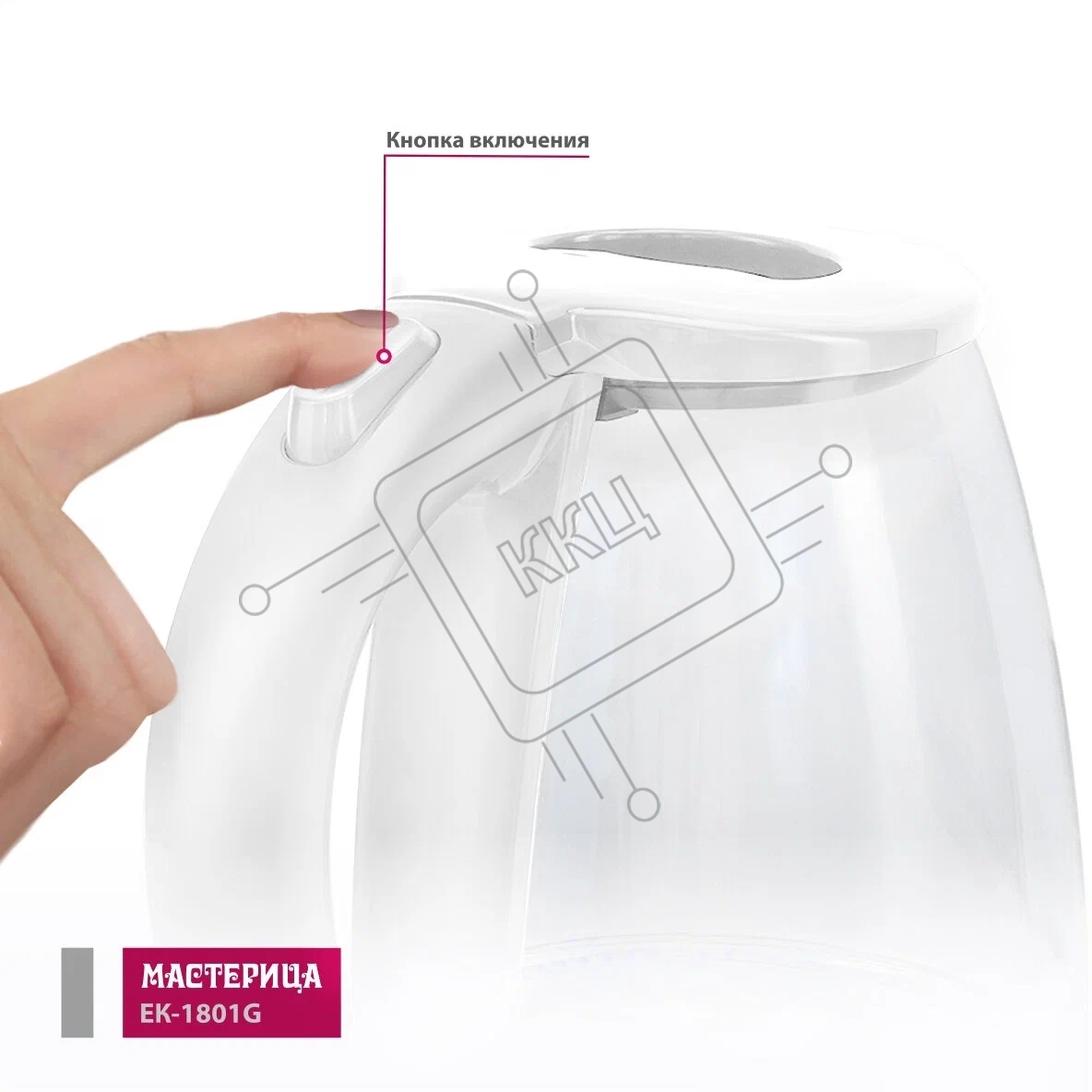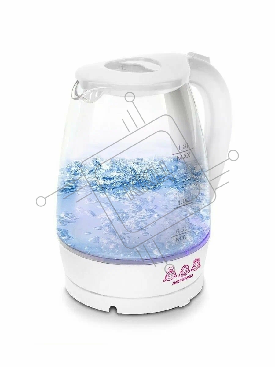 Чайник электрический Мастерица ЕК-1801G, снег, 1.8 л, стекло, 1850 Вт