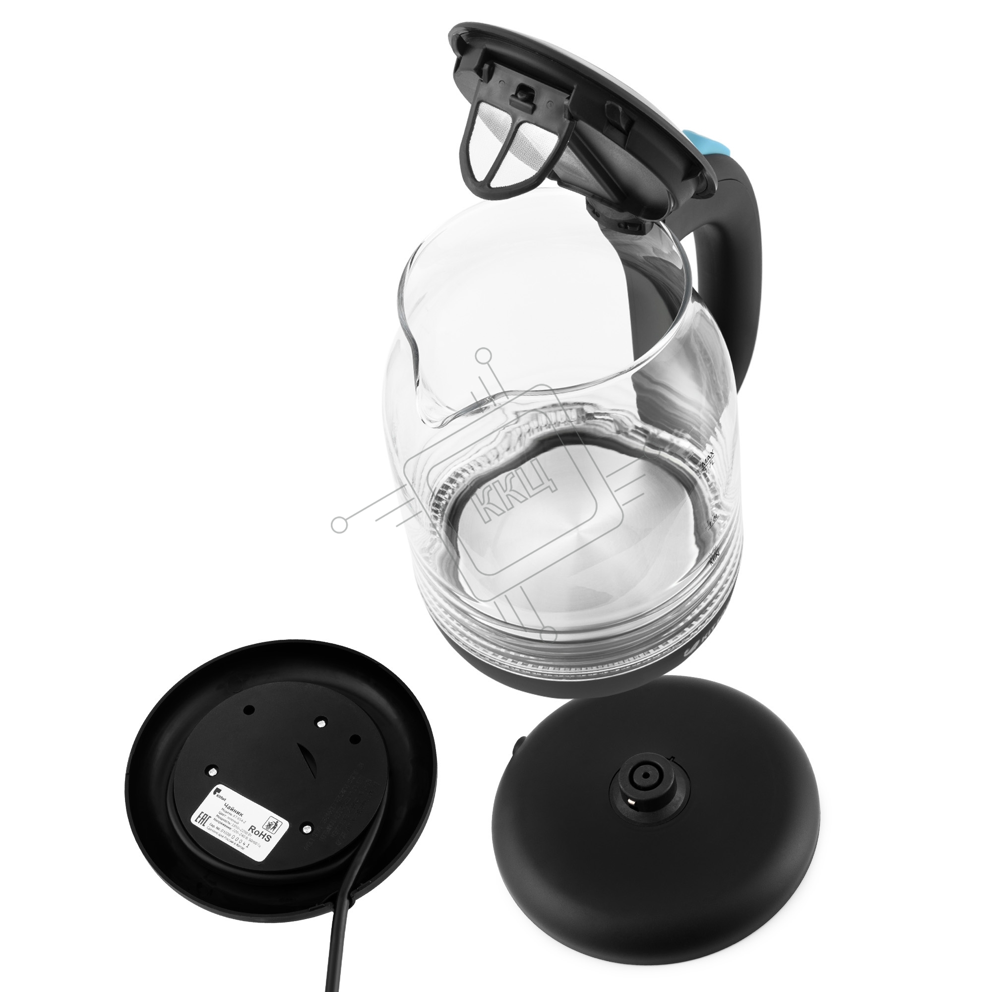 Чайник электрический Kitfort КТ-654-1 1.7л. 2200Вт голубой (корпус: стекло)