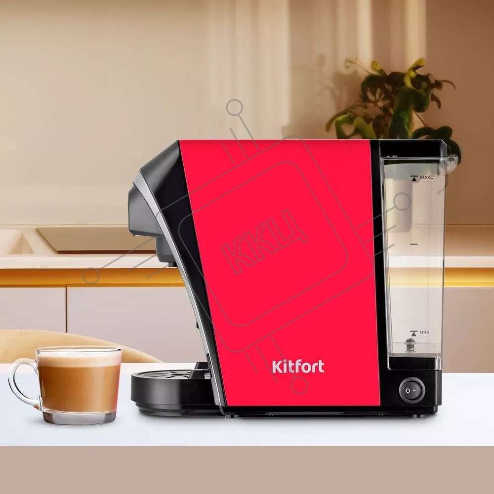 Кофеварка капсульная Kitfort КТ-7227 красный/черный, исп. кофе - капсулы/молотый, 0,8 л, 1400 Вт, 20 бар