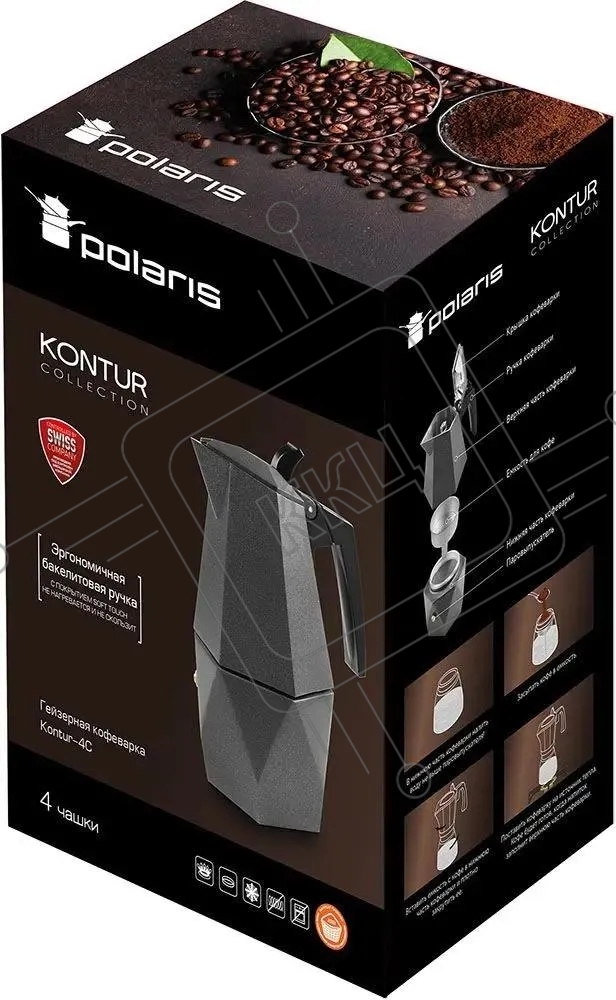 Кофеварка гейзерная Polaris Kontur 4C cерый, 0,3 л
