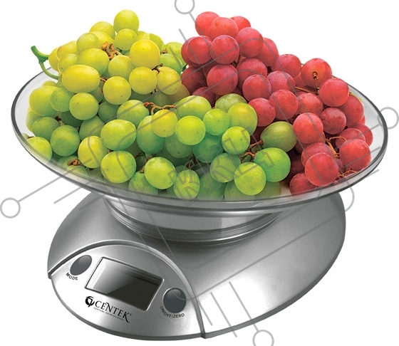 Весы кухонные Centek CT-2451 электронные, чаша, пластик, 5кг серебро/черный