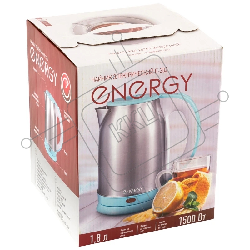 Чайник Energy E-202 (1,8 л, диск) стальной бело-голубой