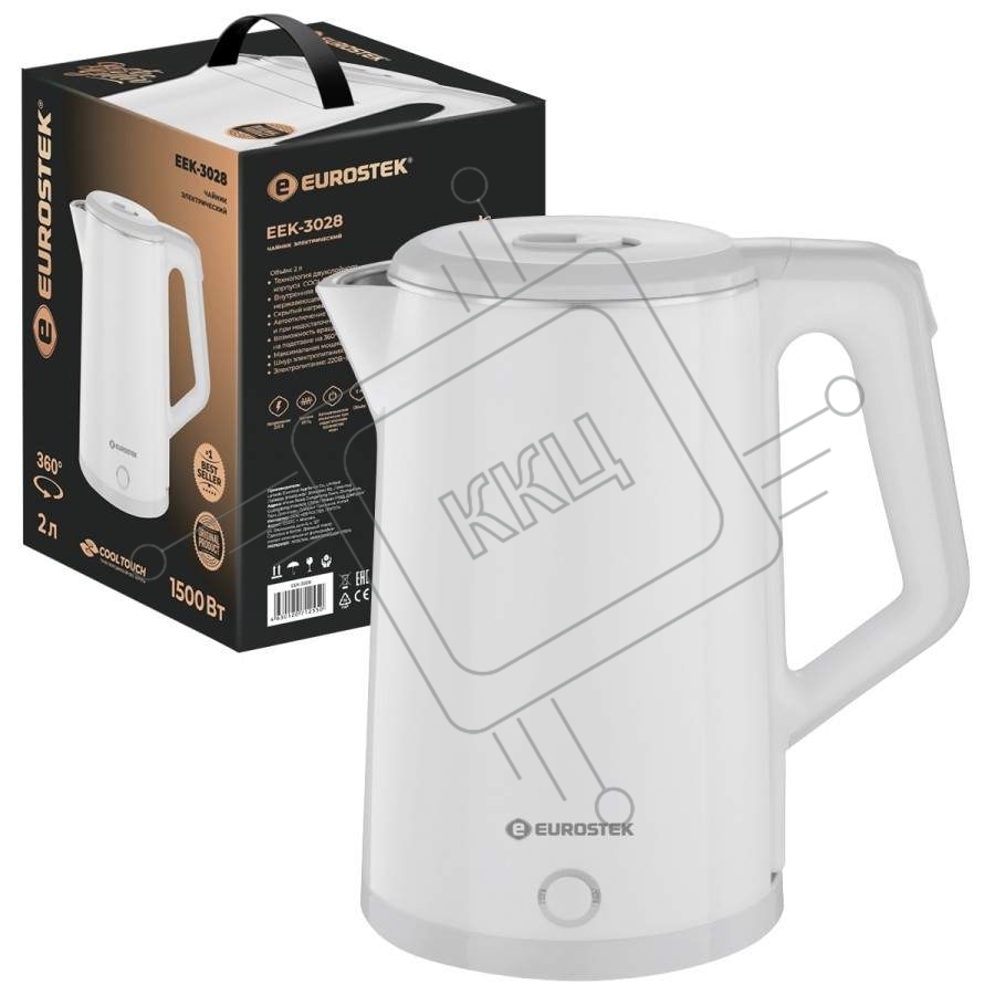Чайник Eurostek EEK-3028, 2 л, Белый технология двухслойного корпуса COOL TOUCH