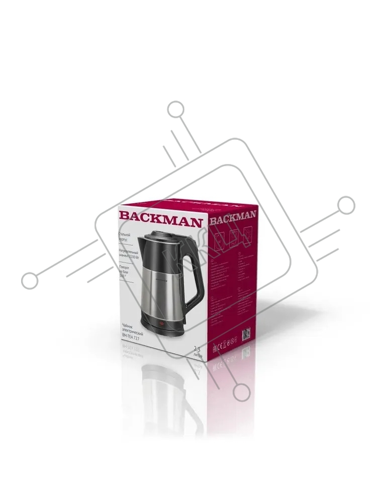 Чайник электрический BACKMAN BM-TEA 727 2,3 л, 2200 Вт, серебристый/черный