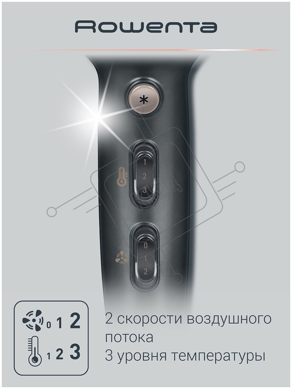 Фен Rowenta CV7827F0 черный/серебристый, 2100 Вт