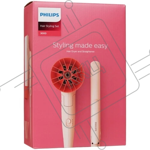 Набор для укладки волос Фен Philips BHP398/00 розовый, 1600 Вт, компактный + выпрямитель