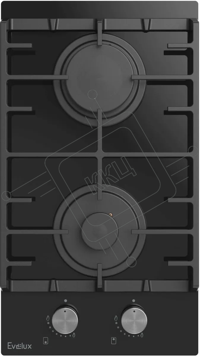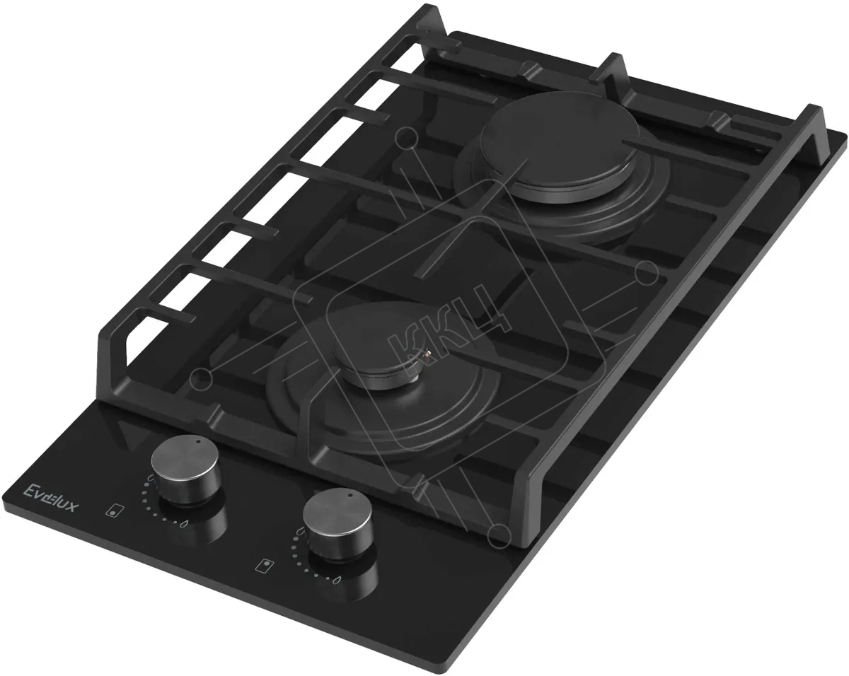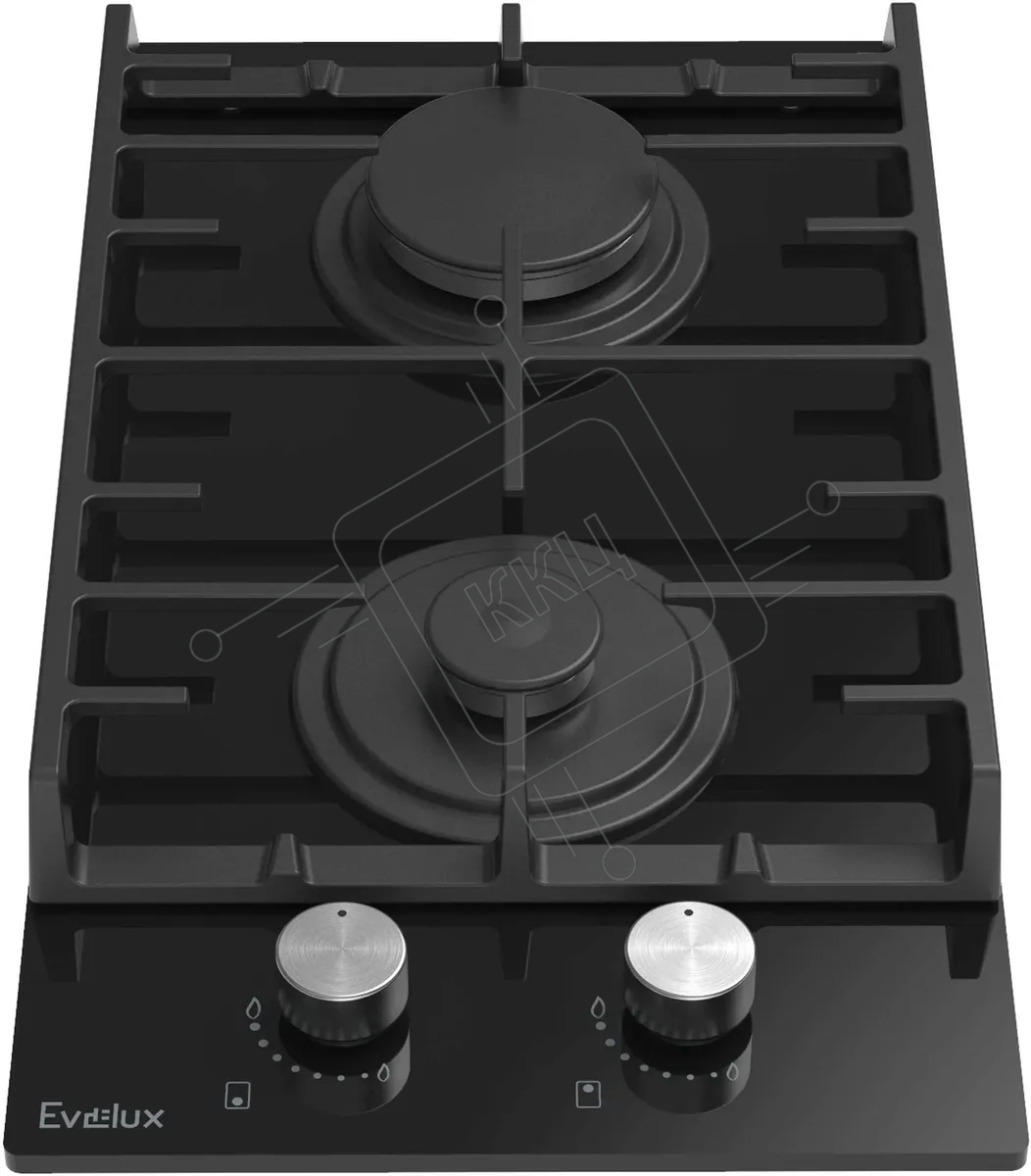 Газовая варочная панель EVELUX HEG 360 BG, Hi-Tech, 30 см, 2 конфорки, газ-контроль, электроподжиг, черный
