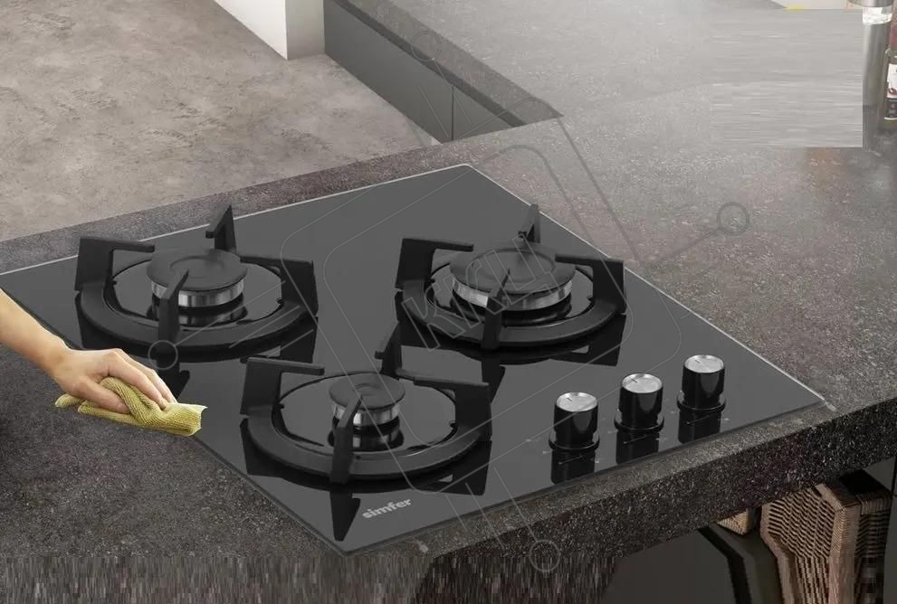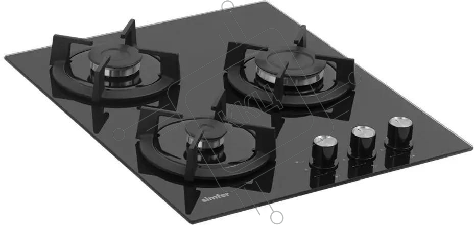 Газовая варочная панель Simfer H45N30B416, 3 конфорки, закаленное стекло, черный