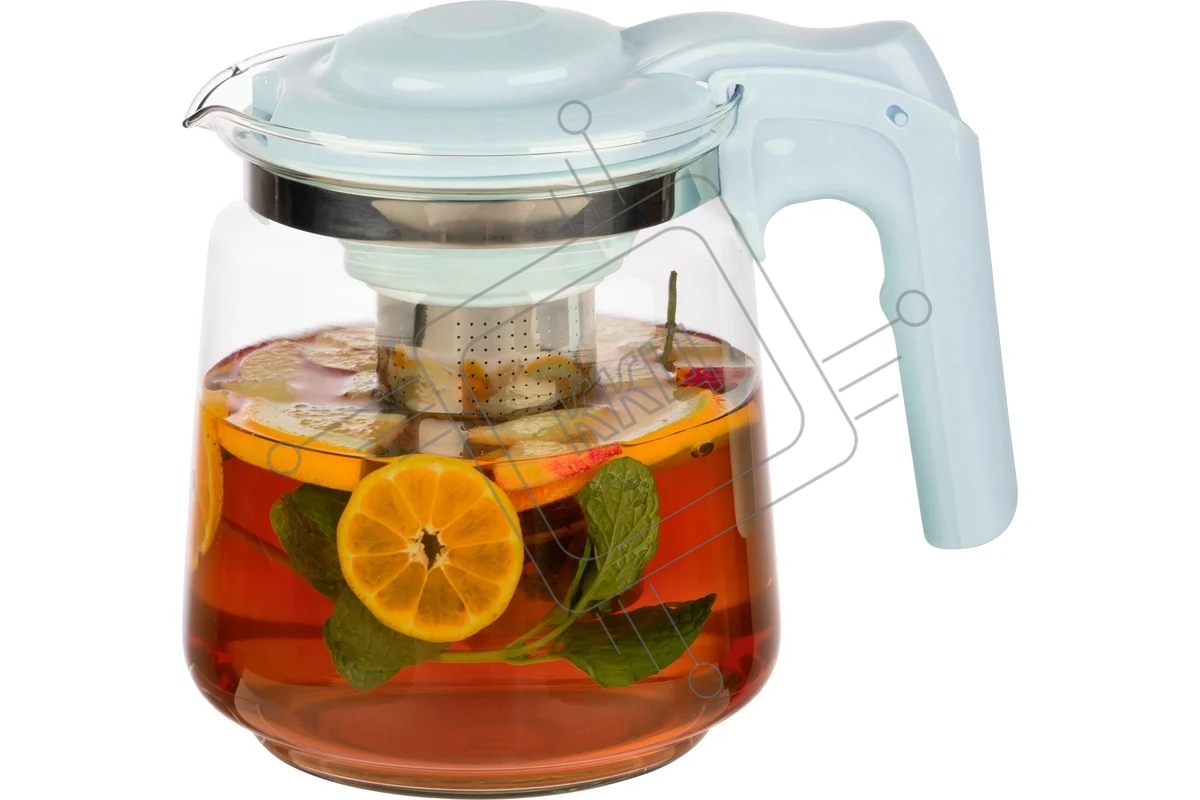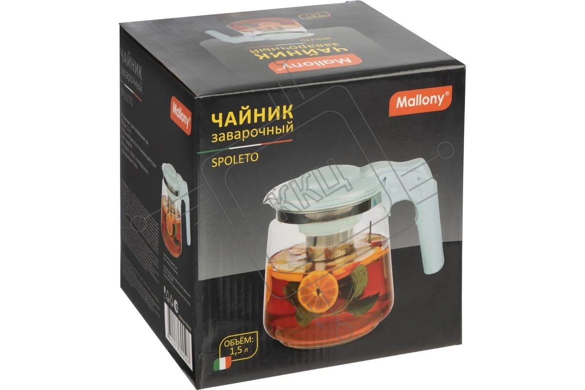 Чайник заварочный MALLONY Spoleto, объем 1,5 л, стеклянный, ручка/крышка из полипропилена, голубой (910129)