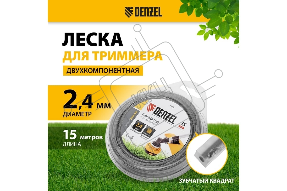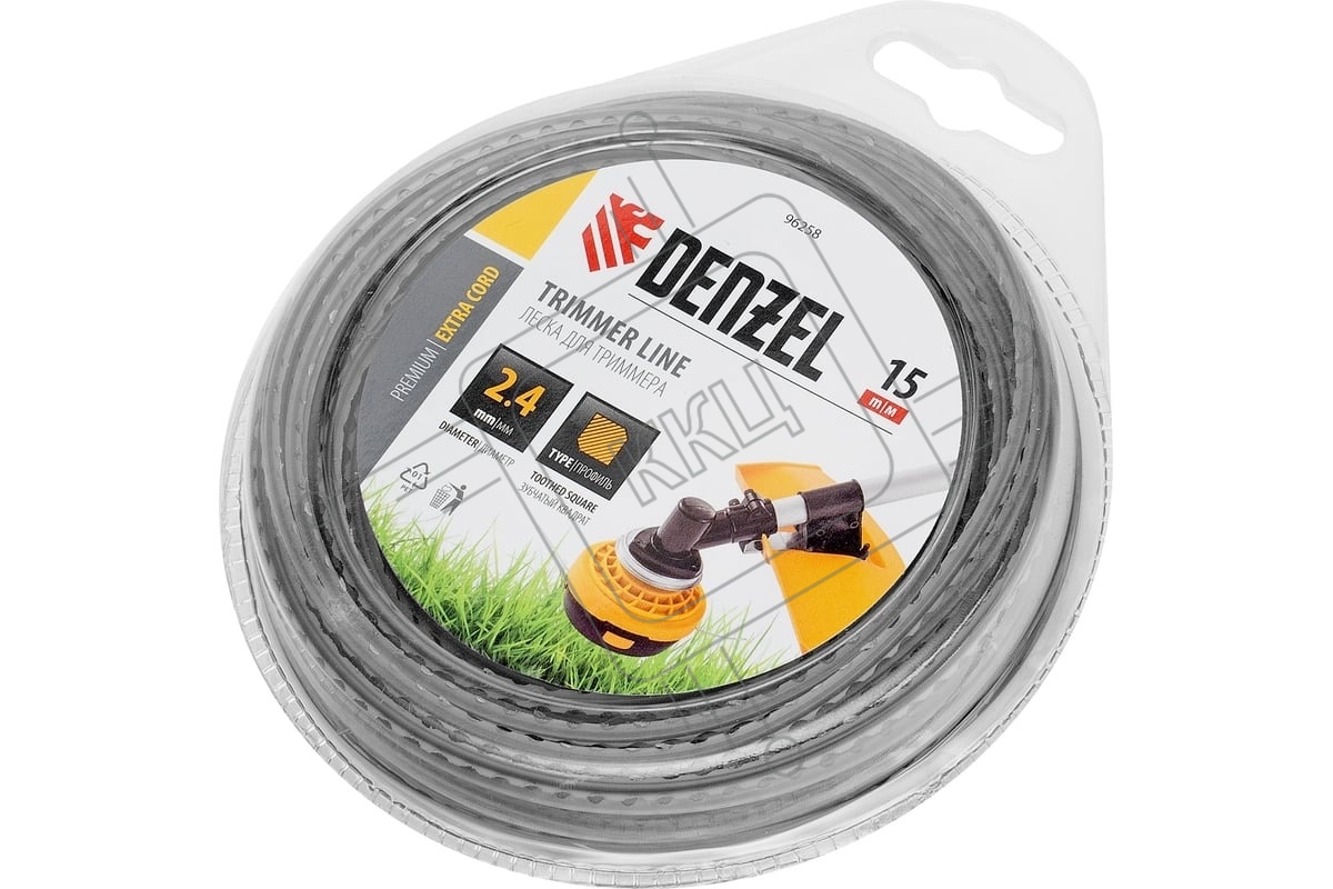 Леска для триммера Denzel двухкомпонентная зубчатый квадрат, 2,4мм х 15м, блистер EXTRA CORD