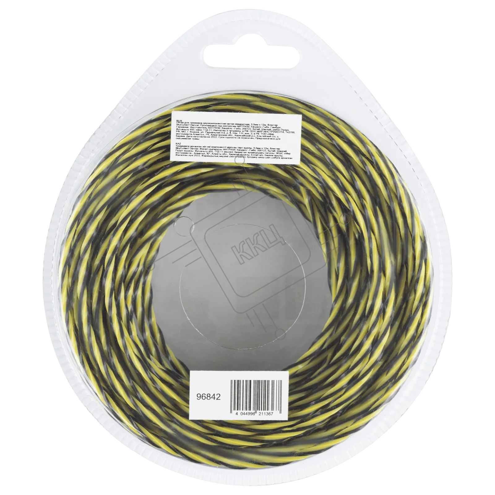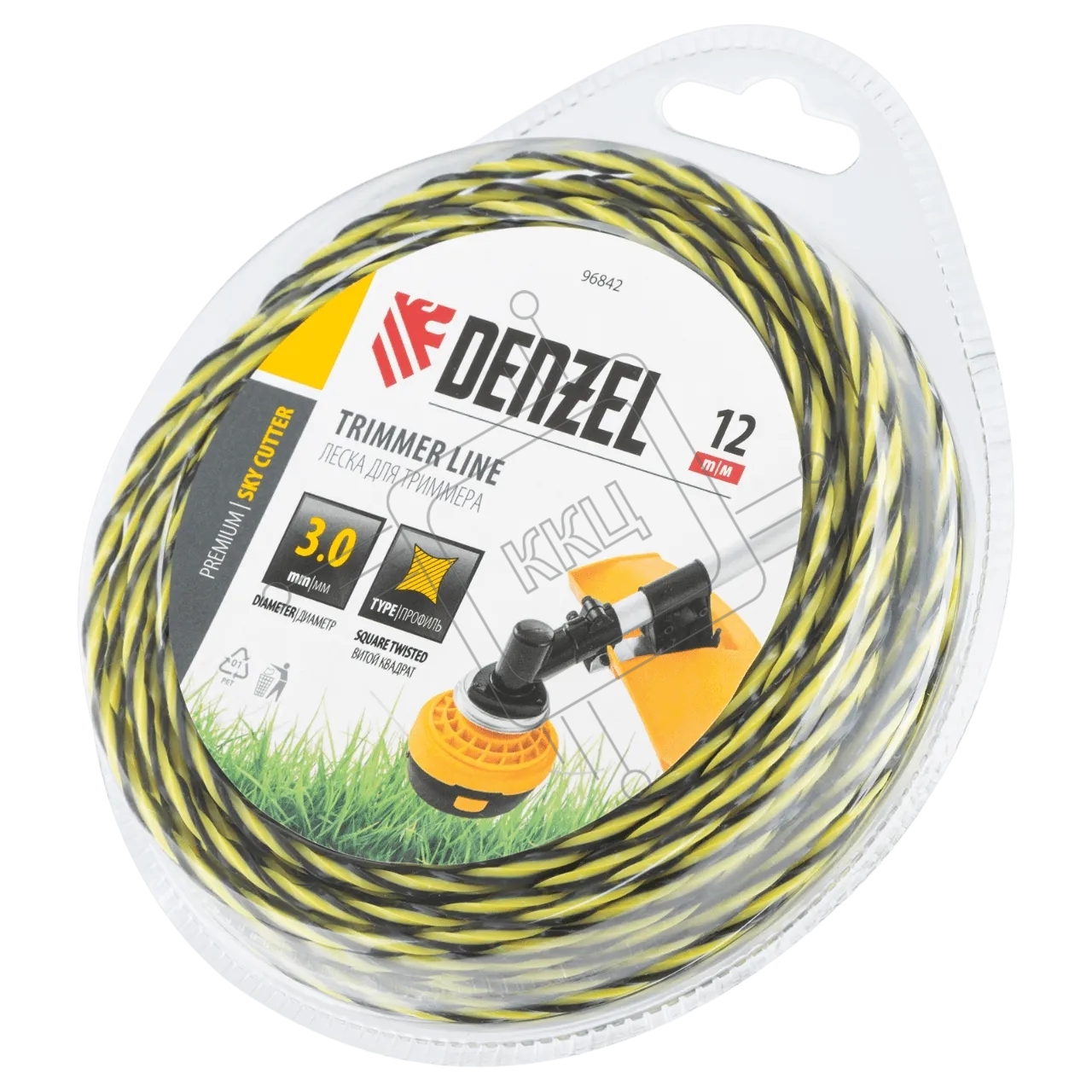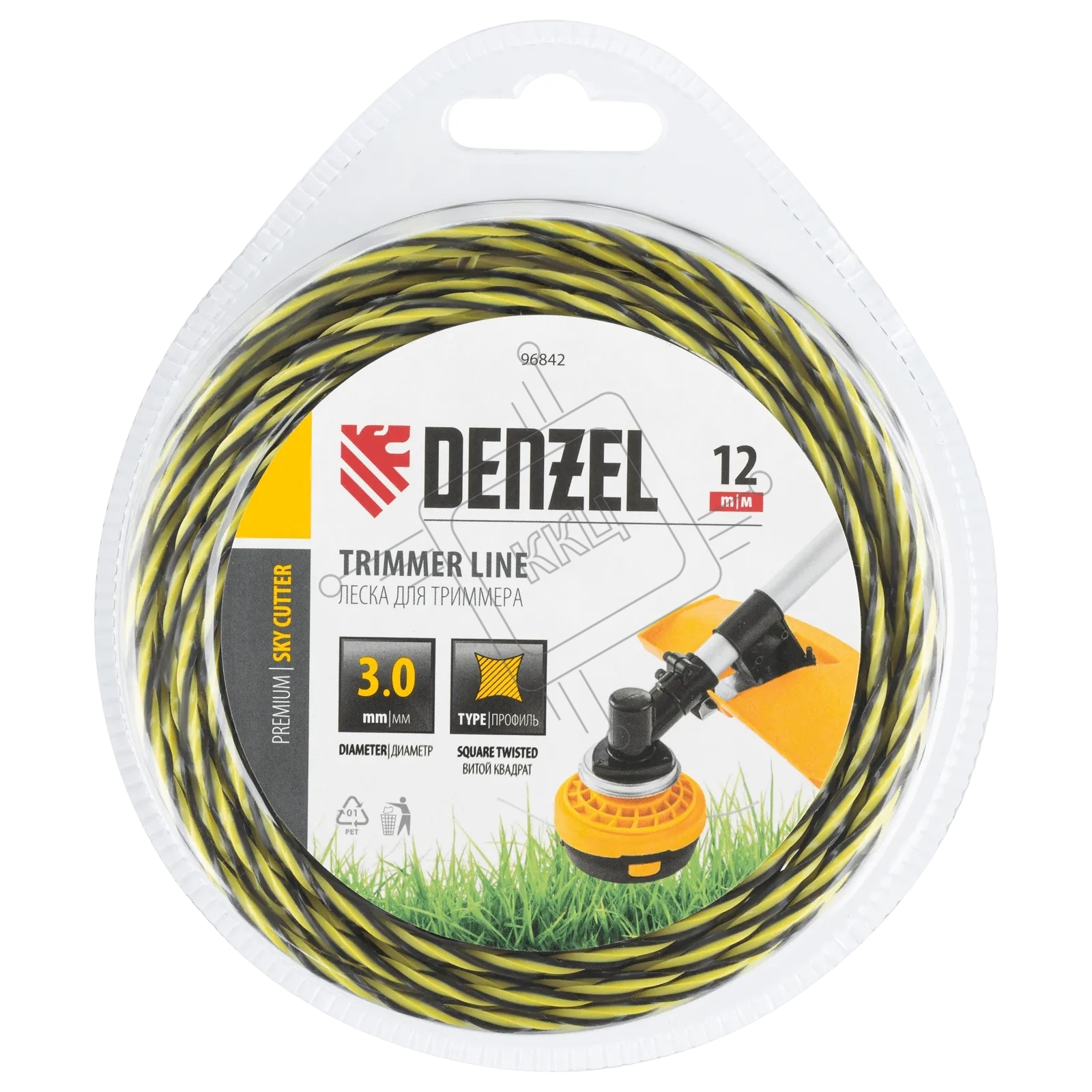 Леска для триммера Denzel двухкомпонентная витая квадратная, 3,0мм х 12м, блистер SkyCutter
