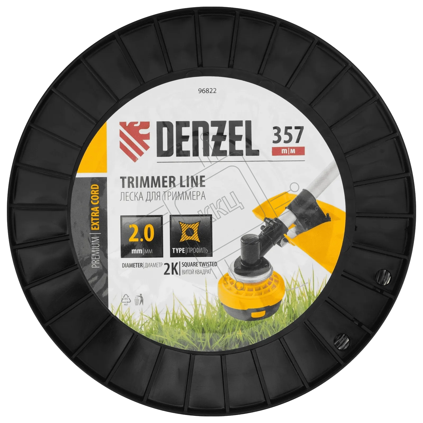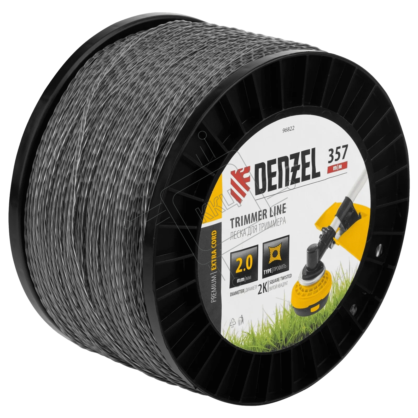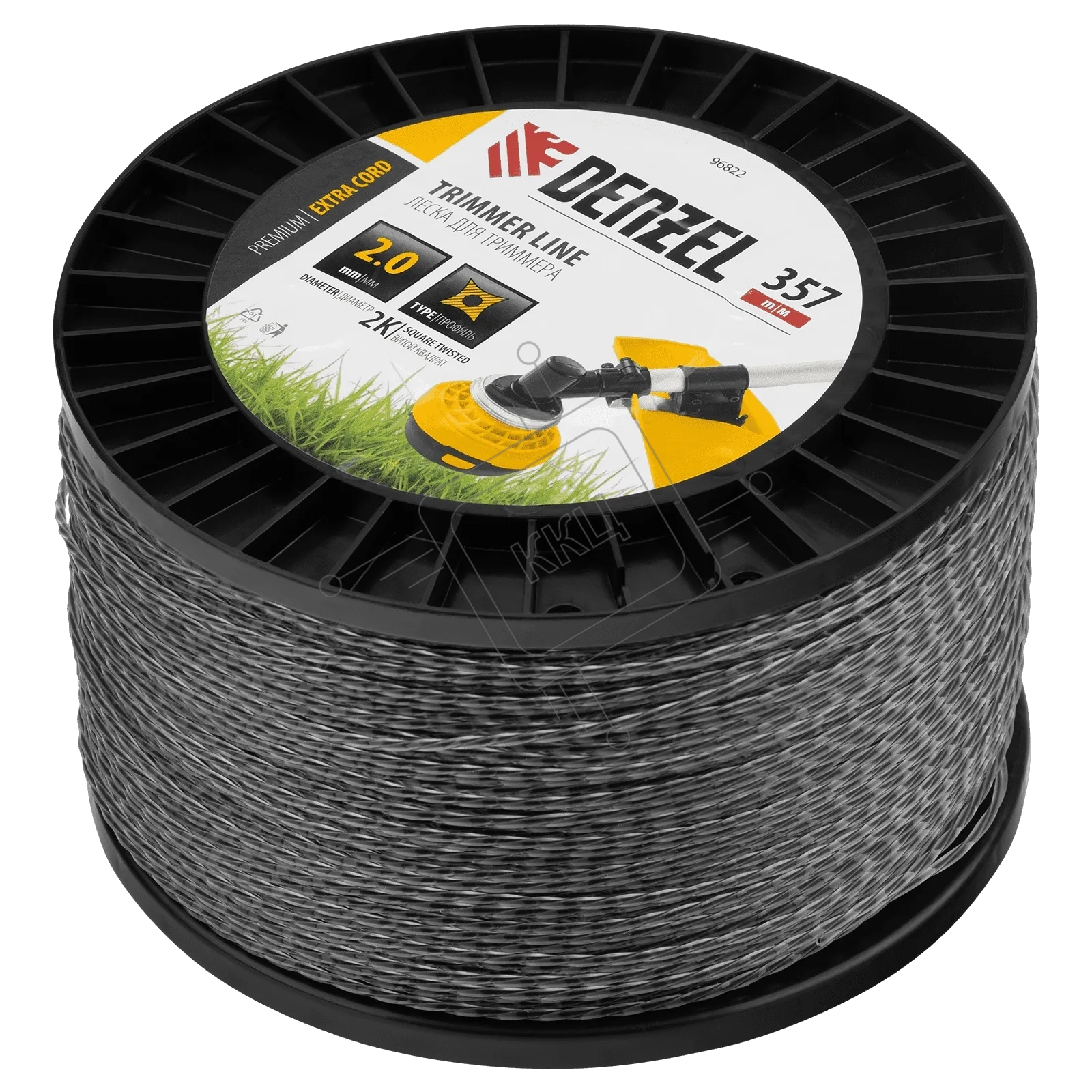 Леска для триммера Denzel двухкомпонентная витой квадрат, 2,0мм х 357м, на DIN катушке EXTRA CORD