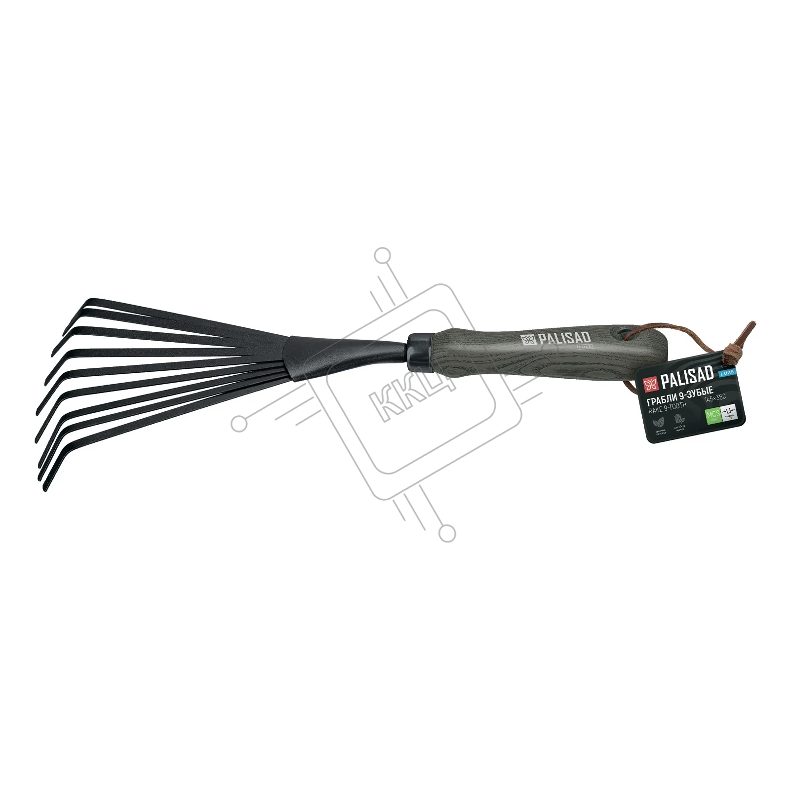 Грабли веерные девятизубые Palisad LUXE 145х365 мм, стальные, рукоятка из ясеня