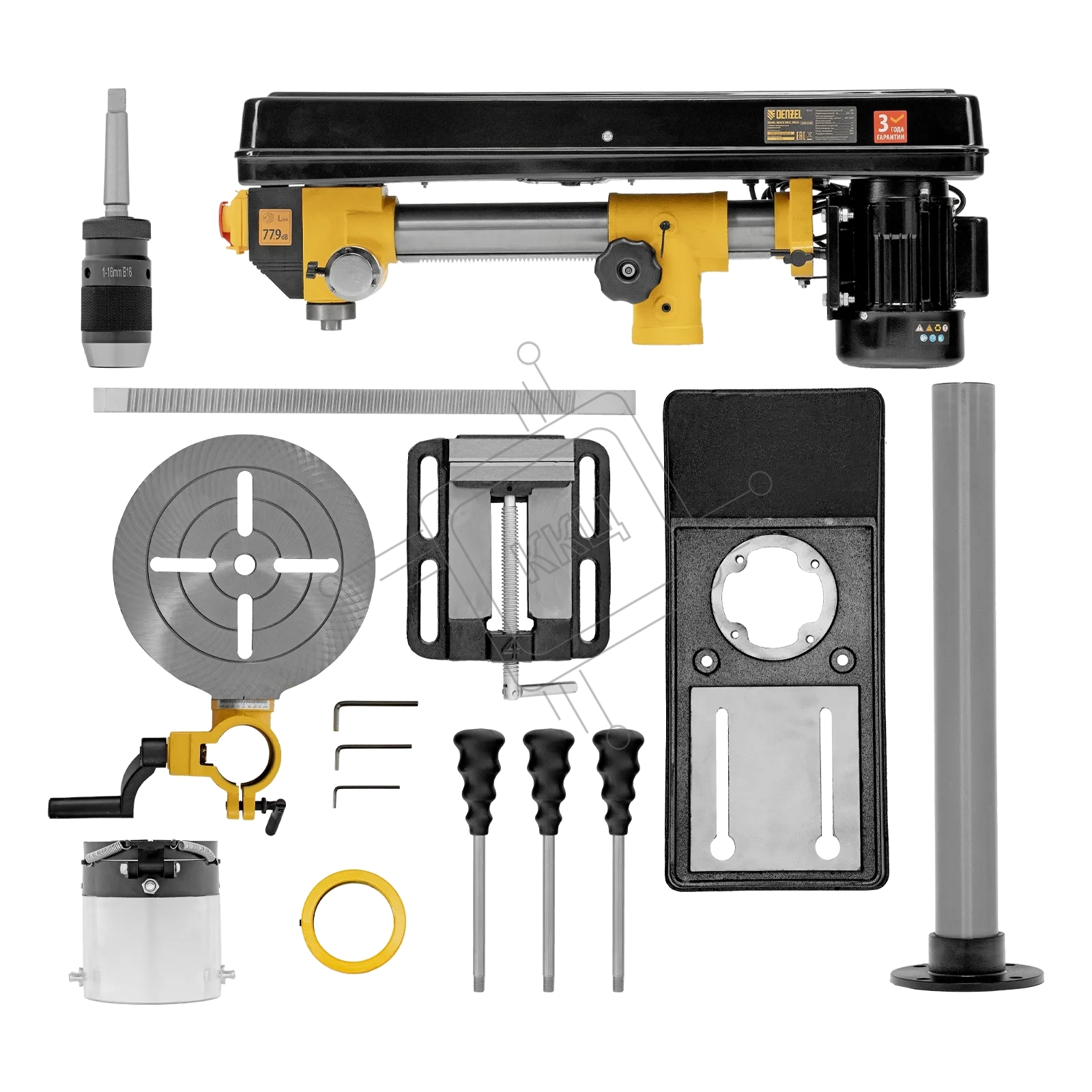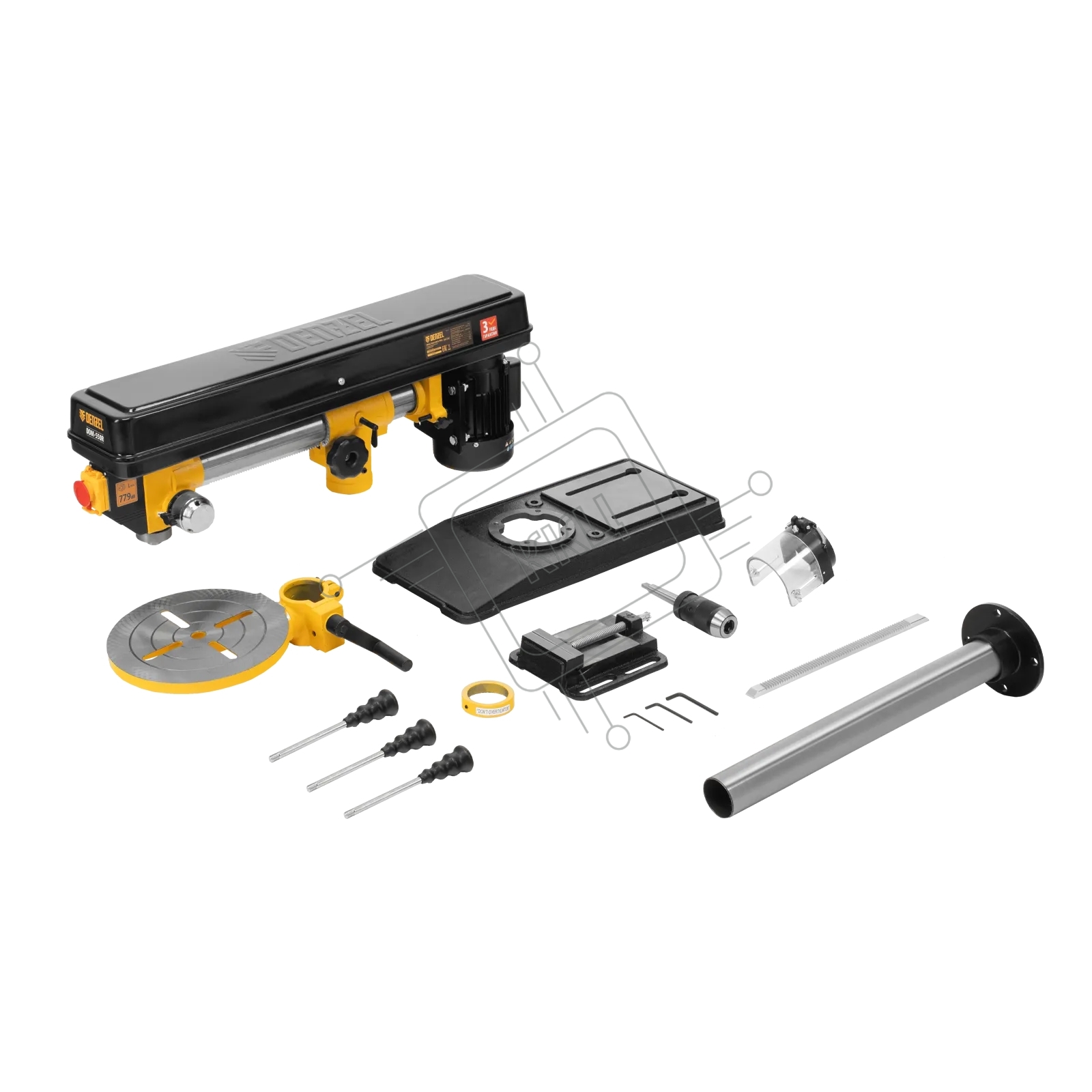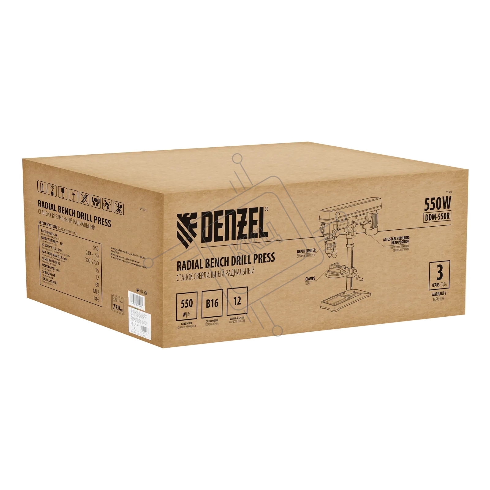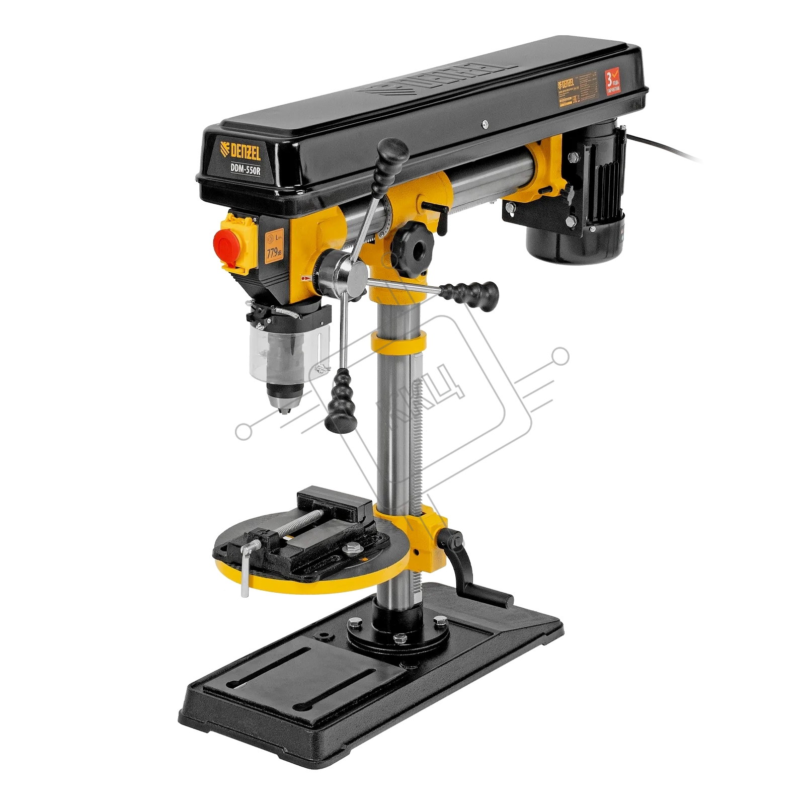 Станок сверлильный радиальный Denzel DDM-550R, 550 Вт, 16 мм, 12 ск., настольный