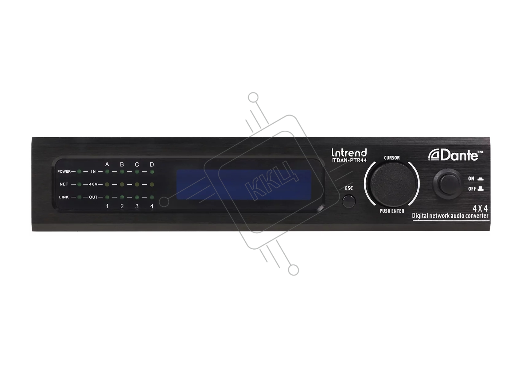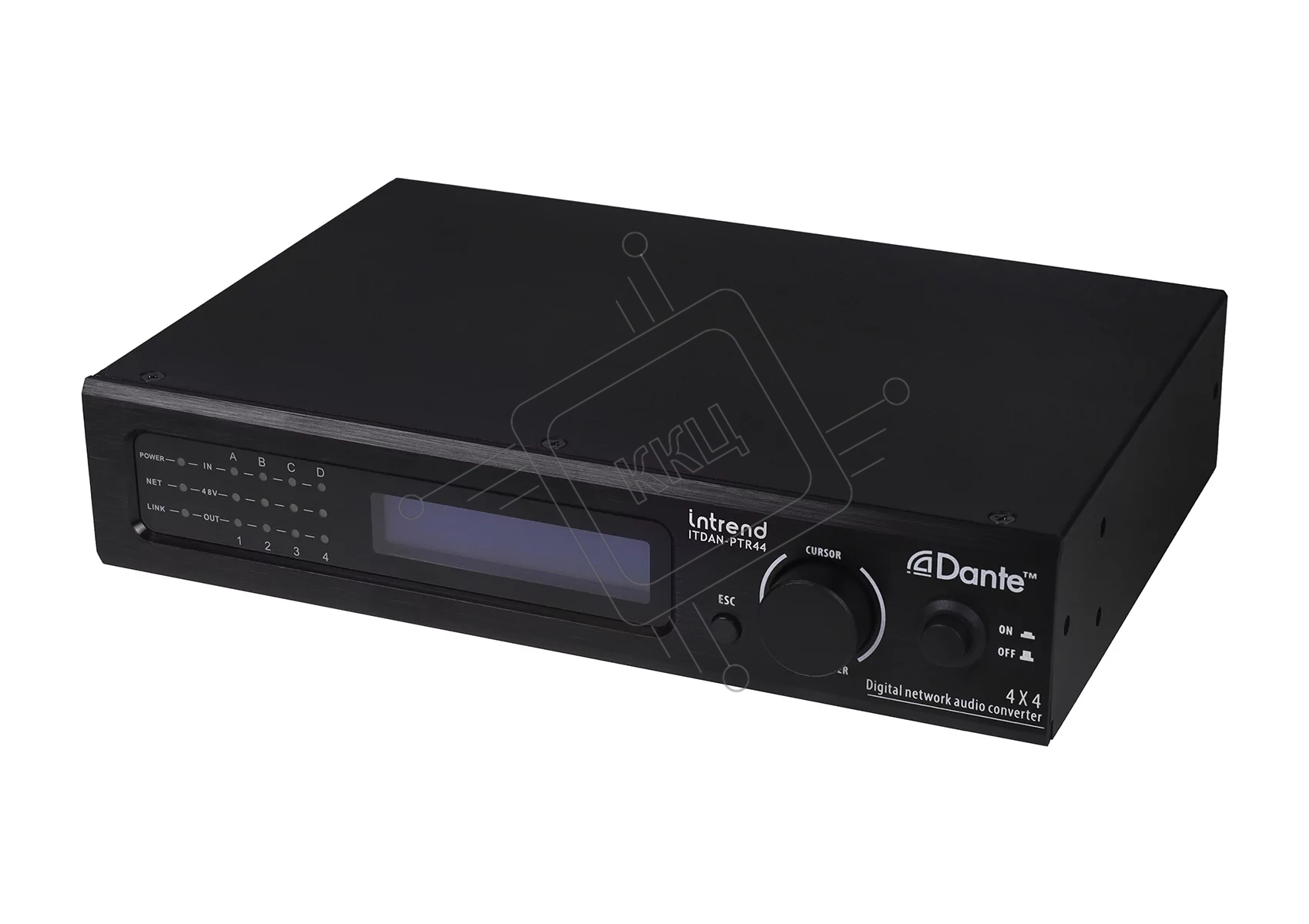 Конвертор Intrend [ITDAN-PTR44] Dante - аналог. 4 входа/4 выхода phoenix, 2xRJ45(Dante). встроенный аудиопроцессор (gain, phantom power, mute). Управление ethernet/RS232. Питание 12V
