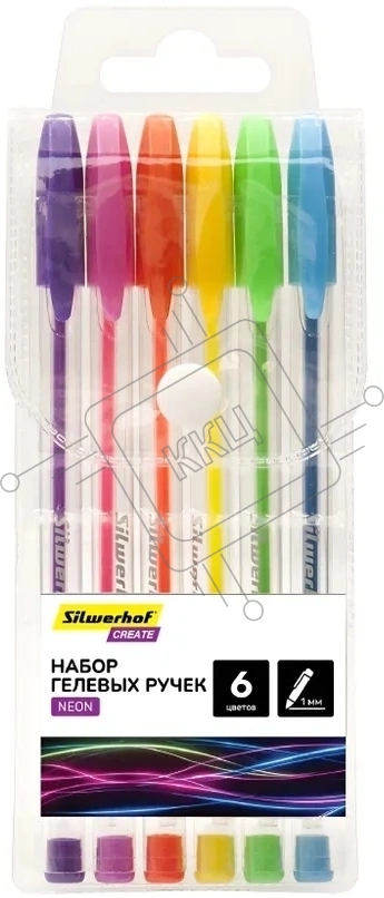 Набор ручек гелевых Silwerhof Create Neon, d=1мм блистер (6шт), 6 цветов