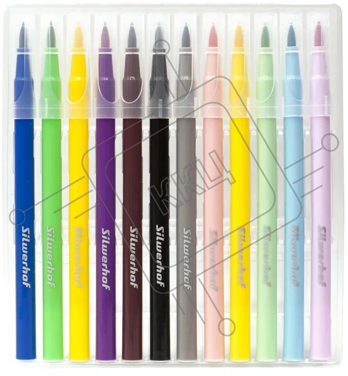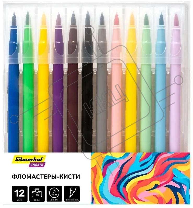 Фломастеры Silwerhof Create 10мм 169мм кисть, вентилируемый колпачок, 12 цветов, пакет с европодвесом