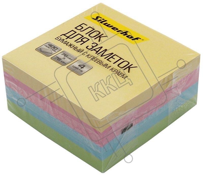 Блок самоклеящийся бумажный Silwerhof Daily 76x76мм 400лист. пастель 4цв.в упак.