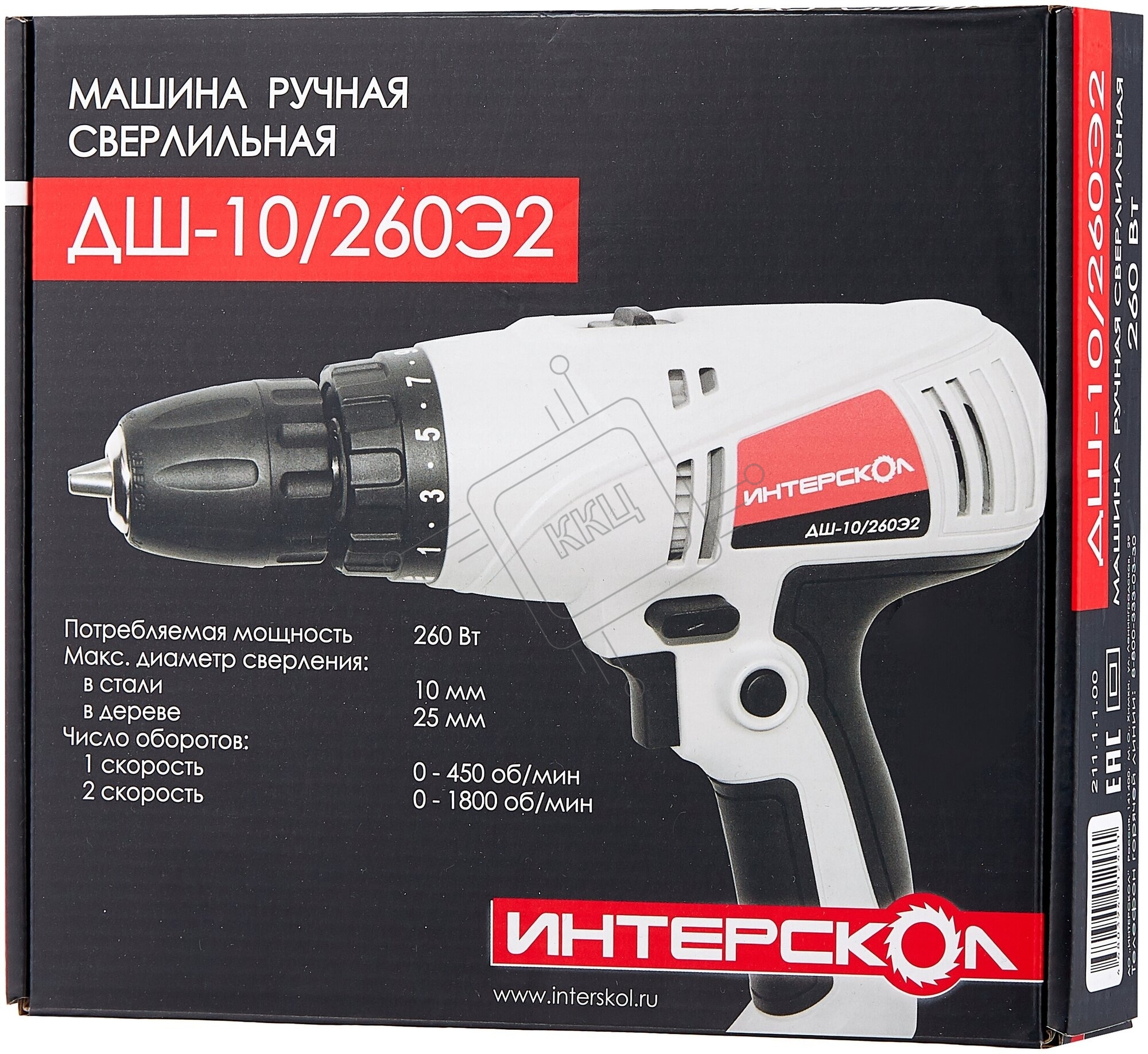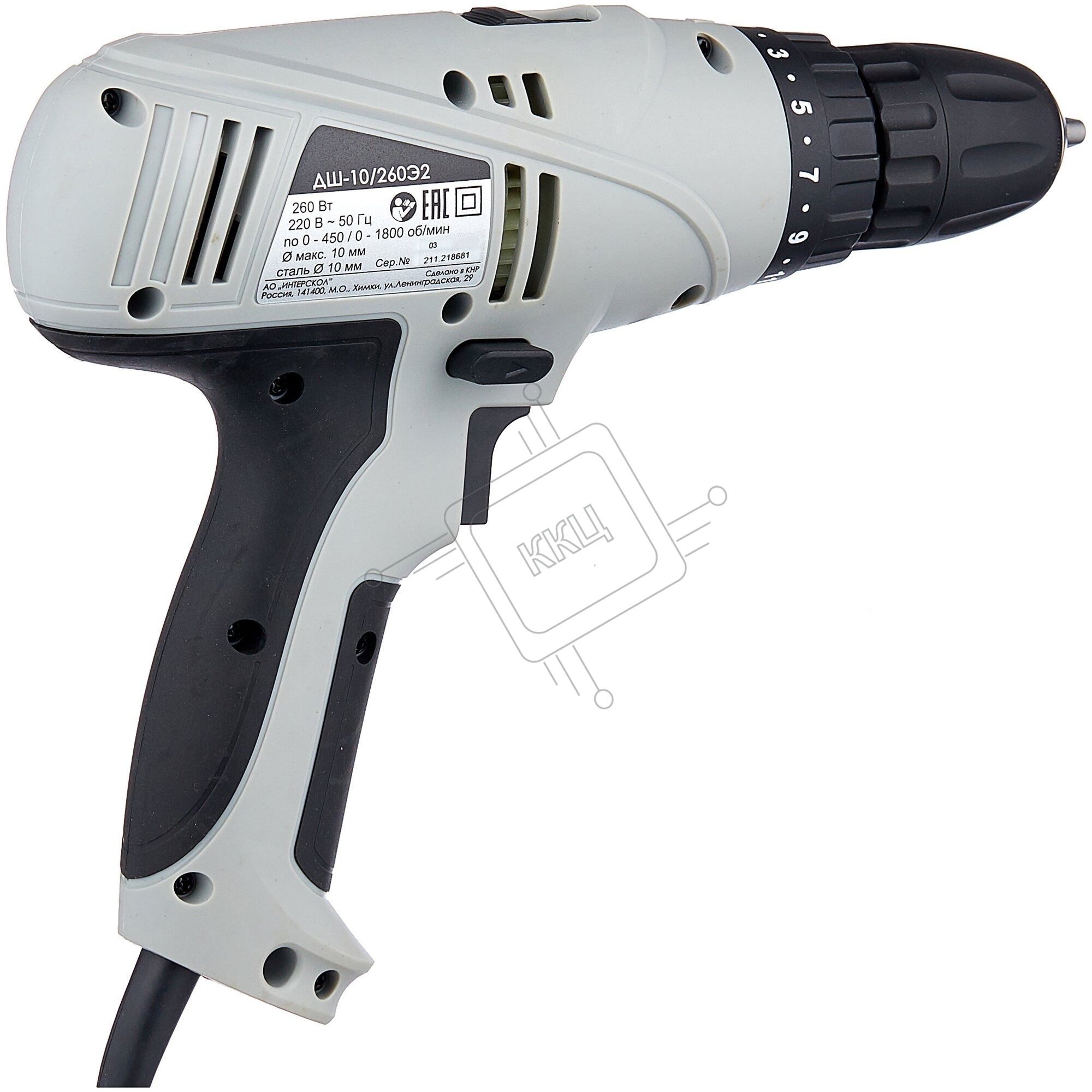 Дрель-шуруповерт сетевой ИНТЕРСКОЛ ДШ-10/260Э2, Сетевая, 260Вт